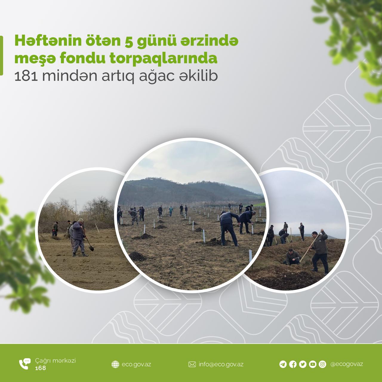 Həftənin ötən 5 günü ərzində meşə fondu torpaqlarında 181 mindən artıq ağac əkilib.