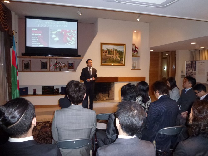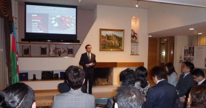 Azərbaycanın Yaponiyadakı səfiri Gürsel İsmayılzadə Ermənistan-Azərbaycan, Dağlıq Qarabağ münaqişəsi, erməni işğalçıları və sovet ordusunun 366-cı motoatıcı alayı tərəfindən Xocalı şəhərinin dinc sakinlərinə qarşı törədilmiş soyqırımı haqqında geniş məlumat verib.Bildirib ki, Xocalıda baş verənlər təkcə Azərbaycan xalqına qarşı soyqırımı deyil, bəşəriyyət, insanlıq əleyhinə törədilmiş qanlı cinayət idi. Qara dənizdən Xəzər dənizinədək olan ərazidə “böyük Ermənistan” dövləti yaratmaq kimi xəstə xülyanın əsiri olmuş erməni millətçilərinin xalqımıza qarşı törətdikləri bu növbəti kütləvi qırğın zamanı 613 nəfər öldürülüb, 487 nəfər şikəst olub, 1275 dinc sakin - qocalar, uşaqlar, qadınlar girov götürülərək ağlasığmaz zülmə, təhqir və həqarətlərə məruz qalıblar.