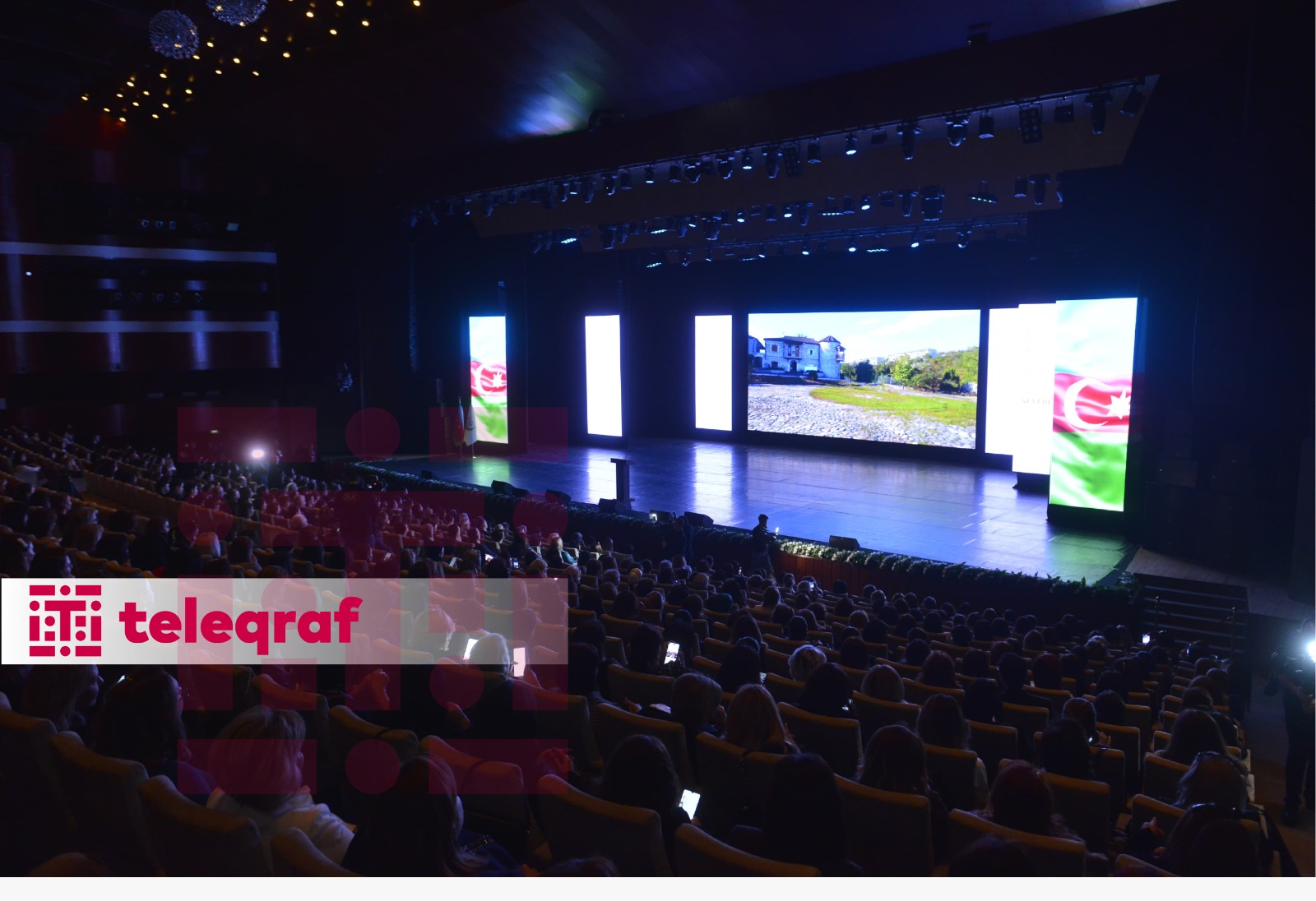 Teleqraf xəbər verir ki, tədbir başlayanda Azərbaycan Himni səsləndirilib, təyyarə qəzasında həlak olan şəhidlərimizin xatirəsi 1 dəqiqəlik sükutla yad edilib. Daha sonra qadınlara həsr edilmiş video çarx nümayiş olunub.