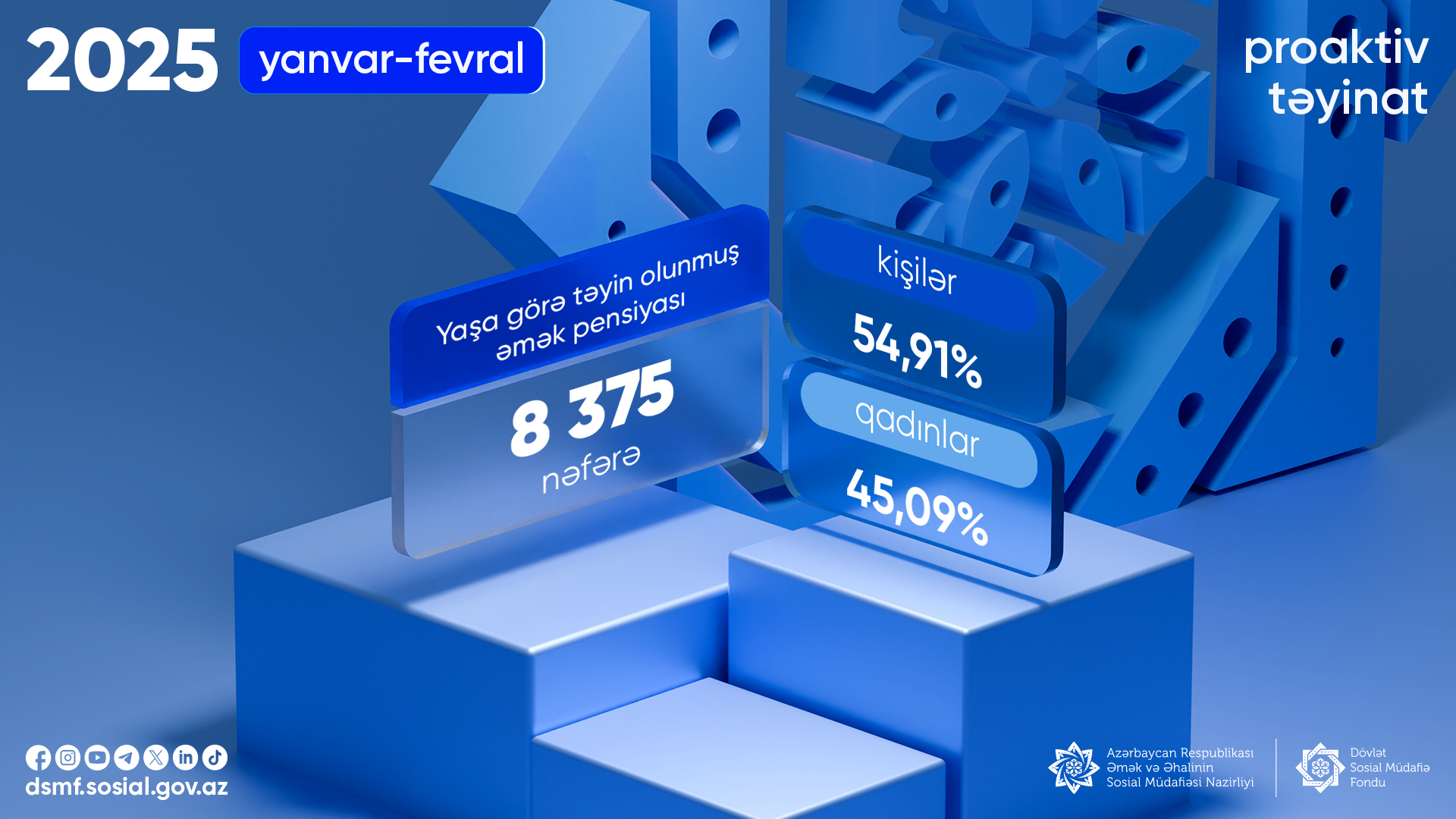 2025-ci ilin yanvar-fevral ayları ərzində 8 375 nəfərə proaktiv qaydada yaşa görə əmək pensiyası təyin olunub.