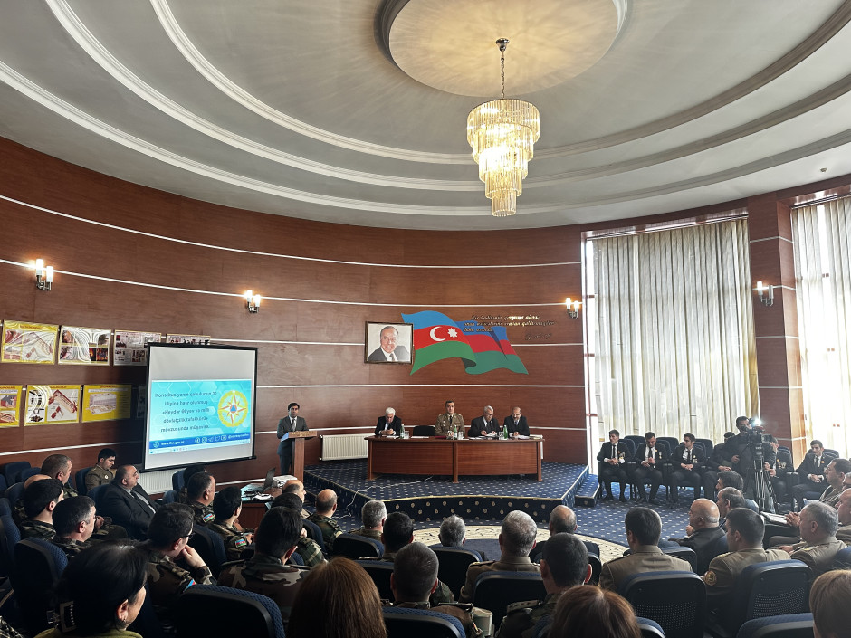 Azərbaycan Respublikasının Prezidenti cənab İlham Əliyevin müvafiq Sərəncamı ilə ölkəmizdə 2025-ci ilin elan olunduğu “Konstitusiya və Suverenlik İli” çərçivəsində Fövqəladə Hallar Nazirliyinin Regional mərkəzlərlə işin təşkili, layihələrin idarə edilməsi və təhsil məsələləri üzrə Baş idarəsinin təşəbbüsü, Gəncə Regional Mərkəzinin təşkilatçılığı ilə “Heydər Əliyev və milli dövlətçilik təfəkkürü” mövzusunda tədbir keçirilib.