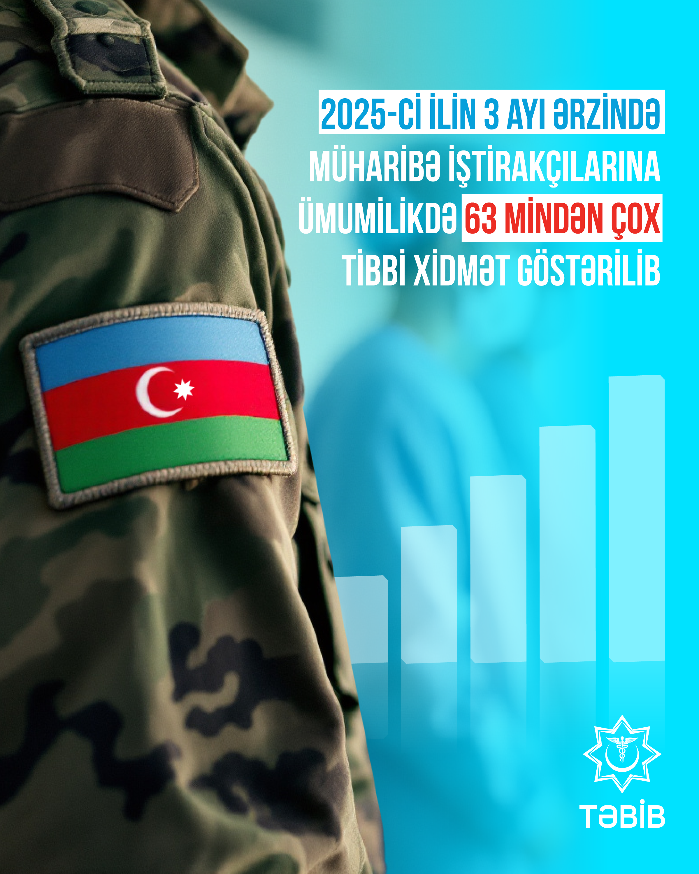 Bildirilib ki, 2025-ci ilin 3 ayı ərzində tibb müəssisələrinə ümumilikdə 5 743 müharibə iştirakçısı 22 150 tibbi xidmət üçün müraciət edib. Bu müraciətlər əsasında onlara 63 373 müxtəlif adda tibbi xidmət göstərilib.