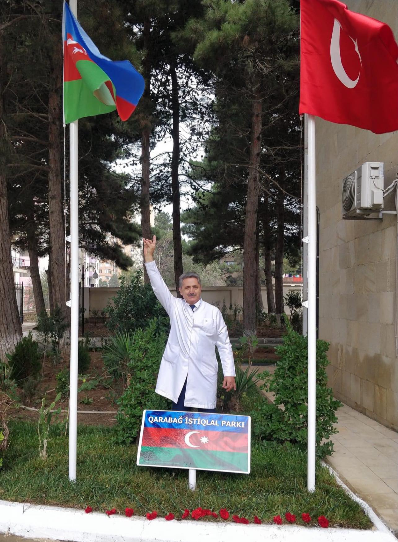 “42 ildir çalışdığım 6 saylı poliklinikanın həyətində saldığım "Qarabağ" istiqlal parkı hədəfdədir. Qoşa dalğalanan Azərbaycan və Türkiyənin milli bayraqları bəzilərinin gözünü deşməkdədir. Səhiyyədə islahatın fəlsəfəsi tam başqadır. Bayrağı, onun ucaldığı yeri abad etmək, qarşısına maneələr qoymamaq ərdəmli insanların işidir. Poliklinikamızda bir sıra sual doğuran hərəkətlər durdurulmalıdır. Guya 2 maşın saxlamağa yer tapılmazmış? Bayrağın qarşısını kəsin! Əmr belədir!”- paylaşımda qeyd olunub.