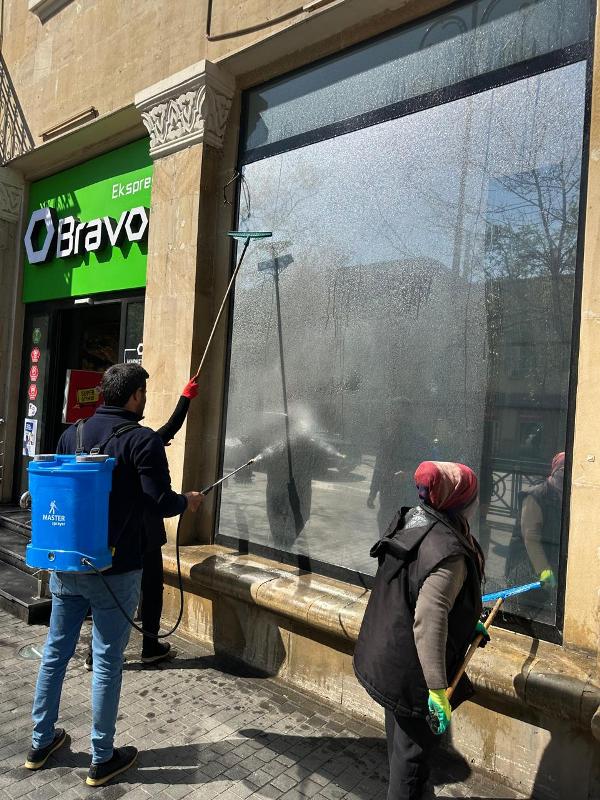 Təmizlik işləri zamanı həm də məhəllədaxili və ara yollar da yuyulub. Xidmətin əməkdaşları tərəfindən prospekt və küçələrin, səki kənarlarının, bordyurların və buradakı işıq dirəklərinin, yol kənarındakı məhəccərlərin, park və istirahət yerlərində oturacaqların yuyulmasını həyata keçirilib, həyət və yaşayış məhəllələrində təmizlik işləri görülüb.İctimai-iaşə, ticarət və digər obyektlərinvitrinlərini təmizlənib, ətrafında səliqə-sahman yaradılıb.