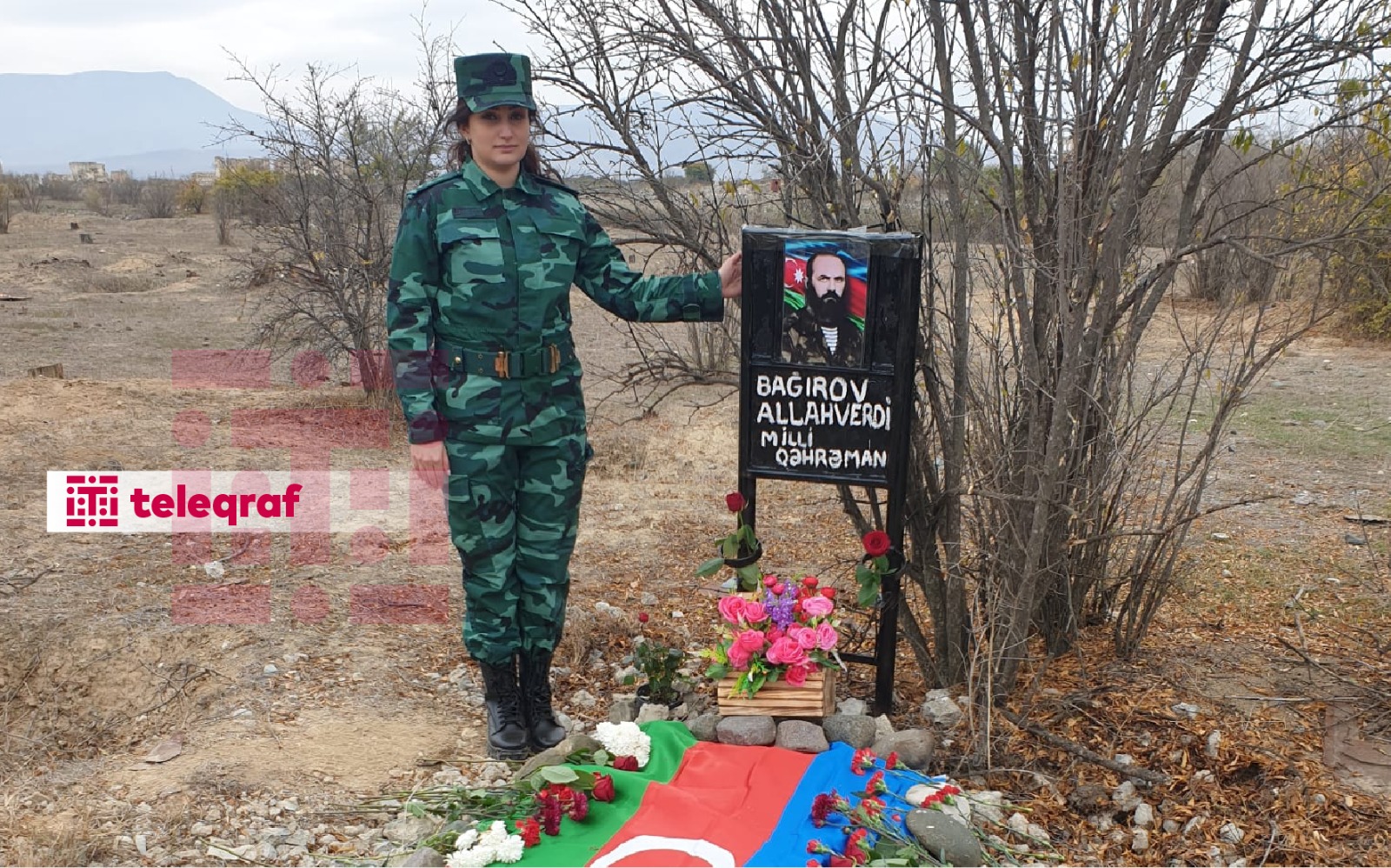 Nar ağaclarının arasında məzarın üzərinə qoyduğumuz dəmiri tapdıq. Dəmirdə atamın ad və soyadı yazılmışdı. Düzdür, dəmirin rəngi pas atmışdı. Qəbiri tapdıq, üzərini bayraqla örtdük".