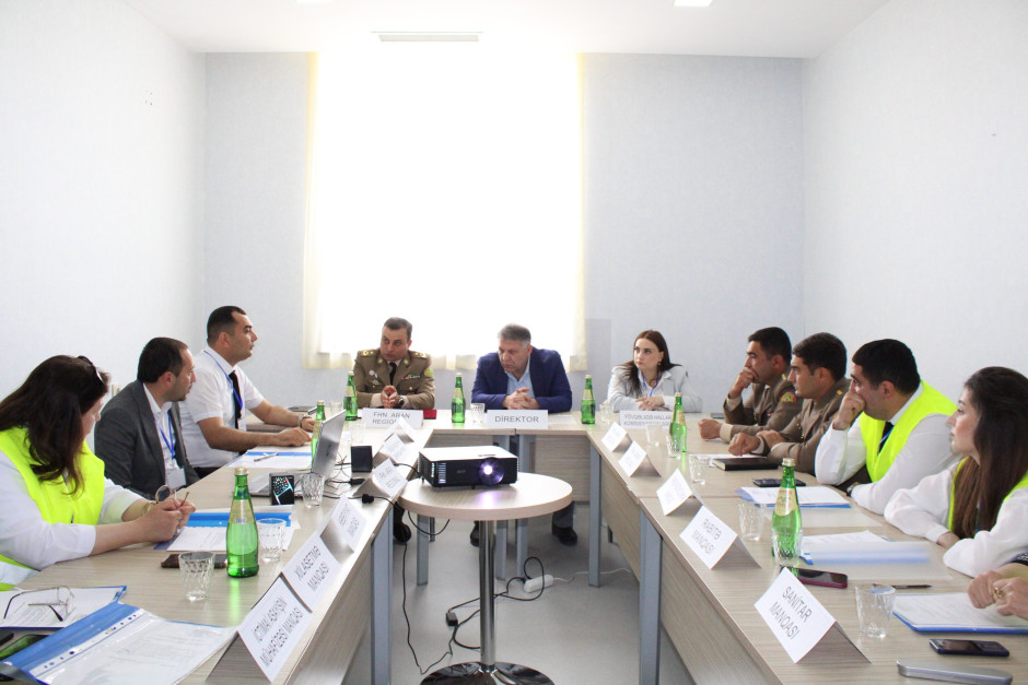 Məşqdə şərti fövqəladə hadisə ilə əlaqədar rəhbər heyətin mülki müdafiə qüvvələrinin idarə edilməsi üzrə fəaliyyəti simulyasiya edilib.