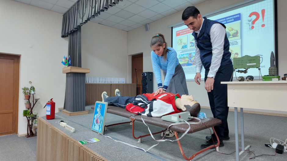 Tədbirlərin nəzəri hissəsində Fövqəladə Hallar Nazirliyinin müvafiq qurumlarının mütəxəssisləri tərəfindən fövqəladə hallar zamanı zəruri davranış qaydaları barədə, o cümlədən əmək təhlükəsizliyinin əhəmiyyəti, mina təhlükəsindən qorunmağın yolları, qaz, elektrik və yanğın təhlükəsizliyi, liftdən istifadə qaydaları, ilk yardım barəsində ətraflı məlumat verilib, suallar cavablandırılıb.