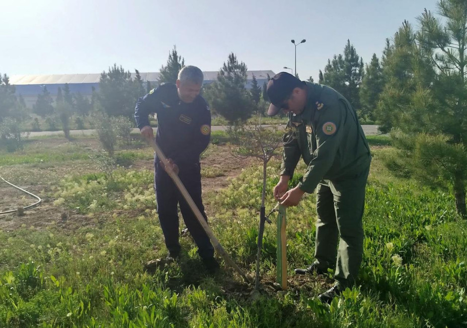 Dəstənin şəxsi heyətinin iştirakı ilə keçirilən ağacəkmə aksiyası aviabazanın ərazisində təşkil olunub.
