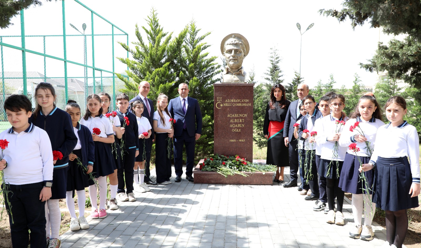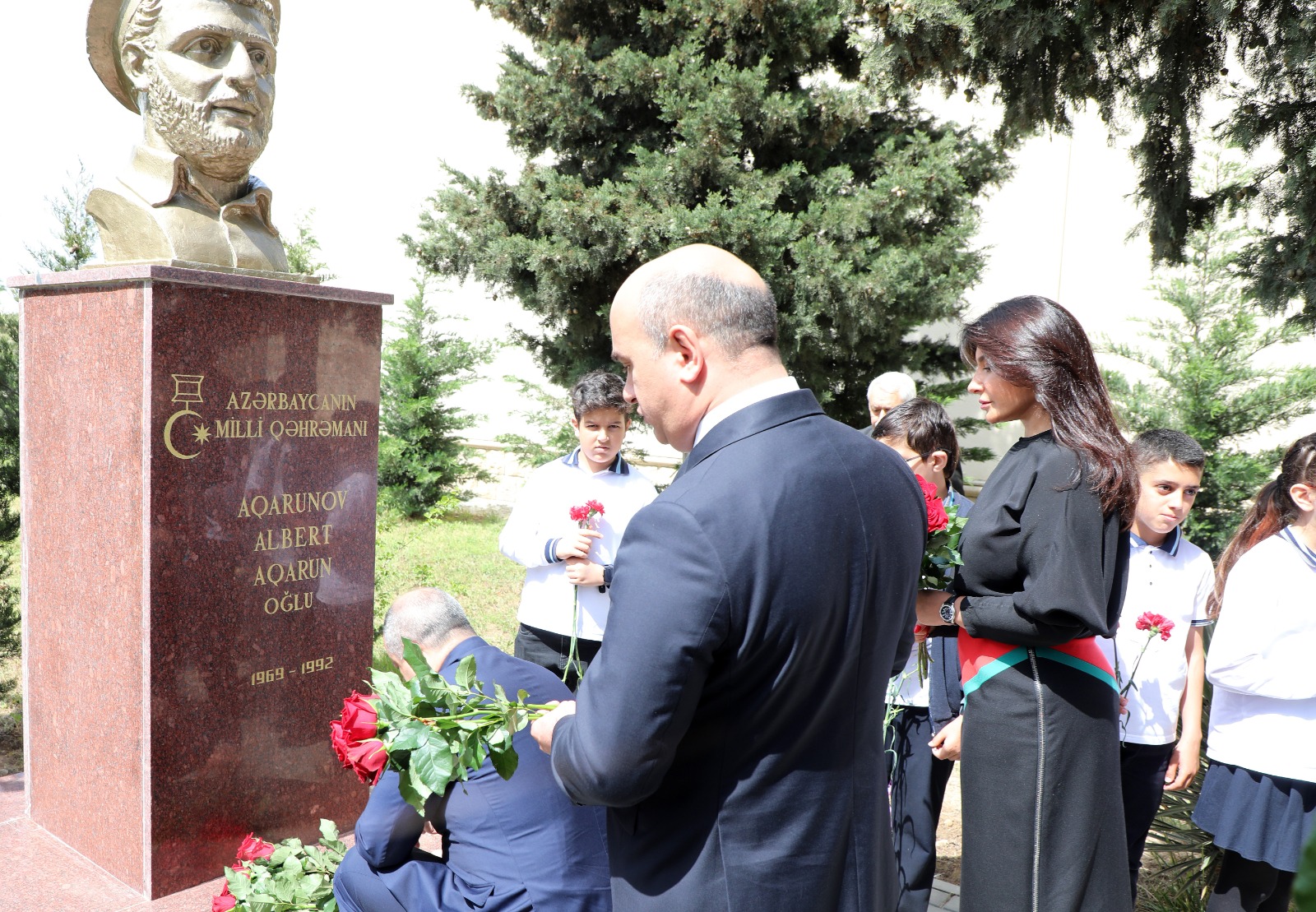 İştirakçılar məktəbin həyətində yerləşən Albert Aqarunovun büstünü ziyarət edib, önünə gül dəstələri qoyublar. Tədbir zamanı qəhrəmanın keçdiyi döyüş yolu, igidliyi və Azərbaycanın müstəqilliyi uğrunda göstərdiyi şücaətlər bir daha xatırlanıb.