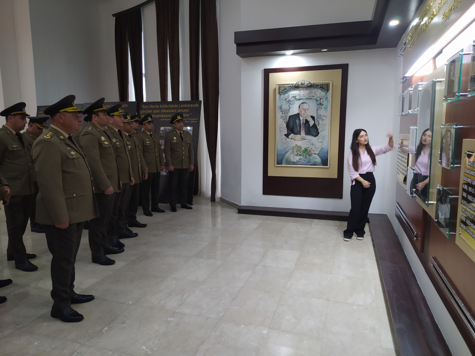 Sonra tədbir iştirakçıları Lənkəran şəhər Heydər Əliyev Mərkəzinə təşkil olunan ekskursiya zamanı görkəmli dövlət xadimi Heydər Əliyevin həyatı və siyasi fəaliyyətinin müxtəlif dövrlərinə aid maraqlı sənədlər, fotolar, nəşrlər və rəsm əsərlərindən ibarət sərgi ilə tanış olublar.