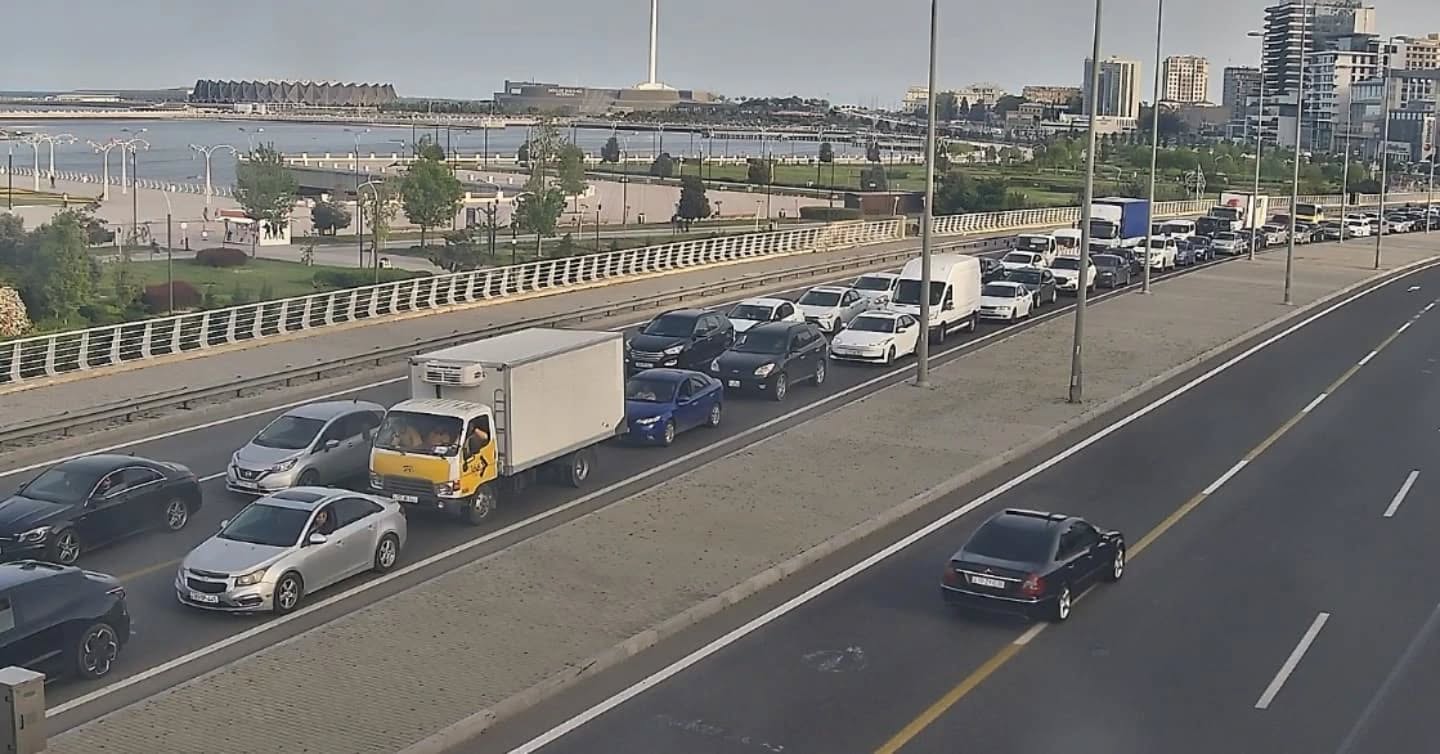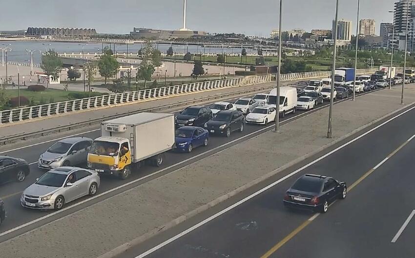 Bakının bir sıra yollarında nəqliyyatın sıxlığı yaranıb.
