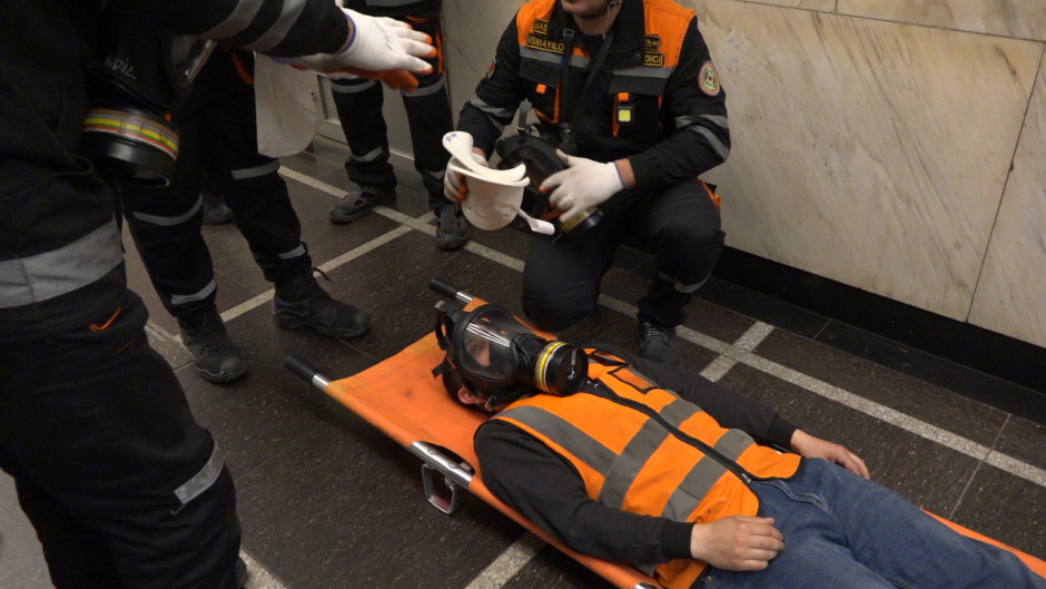 Şərti hadisə ilə bağlı Metropoliten əməkdaşları tərəfindən əvvəlcə stansiyaların bağlanması, tuneldə işçi işıqların yandırılması, keçid qapılarının açılması və “yanğına ilkin müdaxilə” işləri həyata keçirilib.
