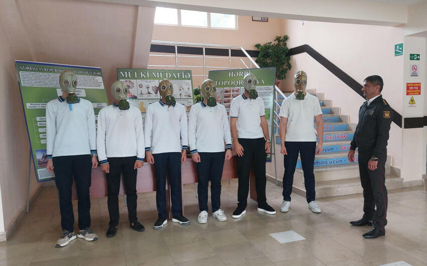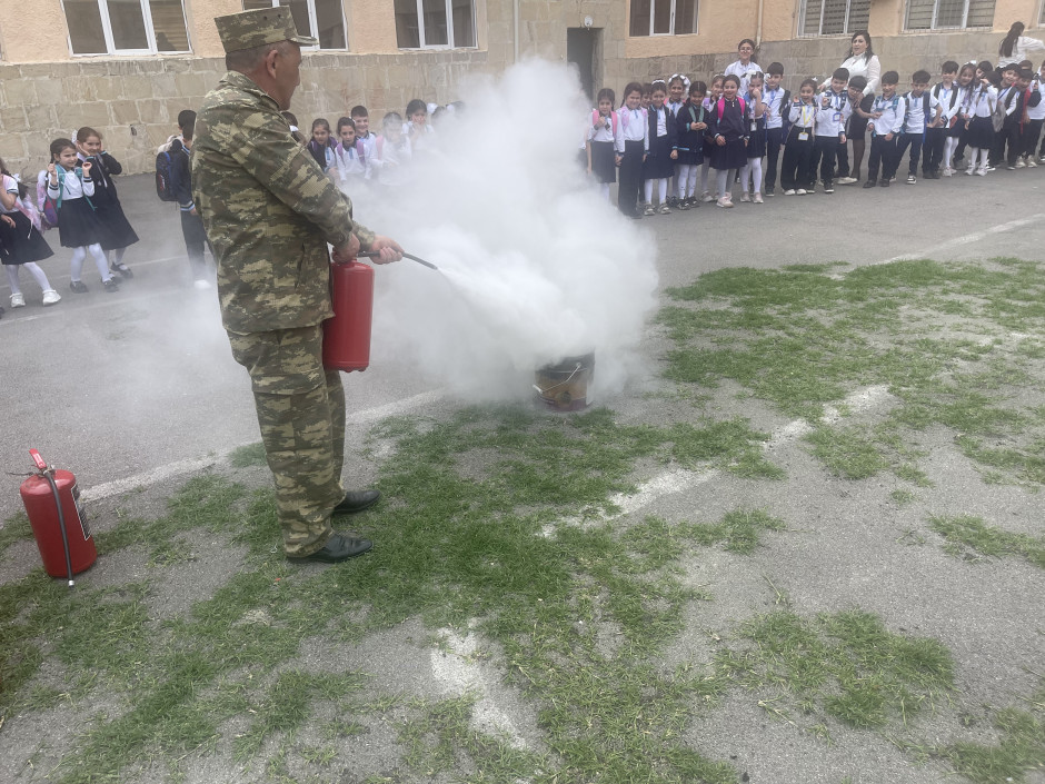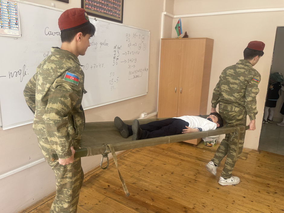 Praktiki hissədə baş vermiş şərti fövqəladə hadisə ilə əlaqədar məktəb kollektivinin təxliyəsi, “zərərçəkmişlərə ilkin yardımın göstərilməsi” və digər əməliyyatlar icra olunub.