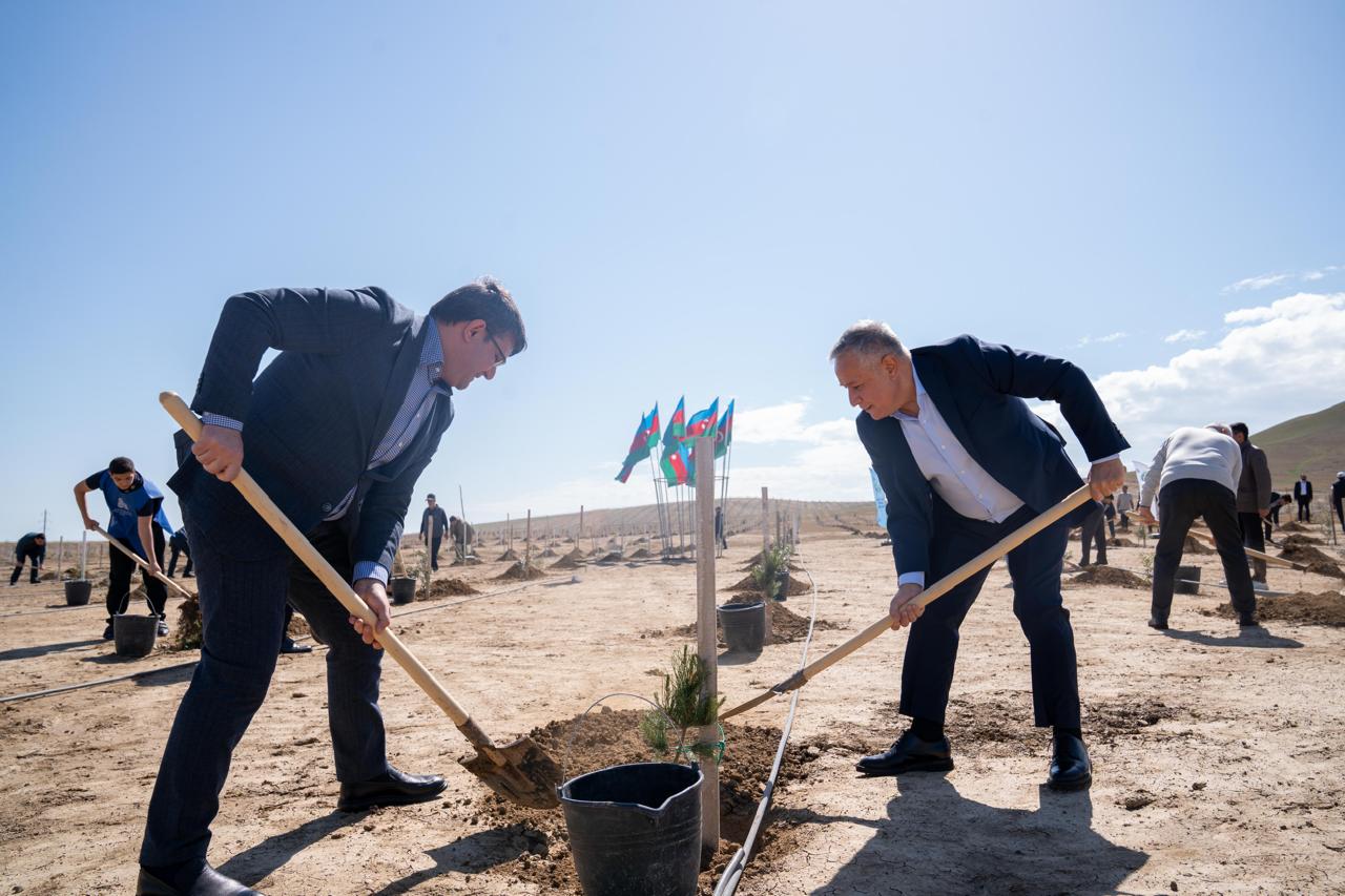 Müşfiqabad qəsəbəsində təşkil olunan aksiyada ekologiya və təbii sərvətlər nazirinin birinci müavini Rəşad İsmayılov, Mənzil İnşaatı Dövlət Agentliyinin İdarə Heyətinin sədri Sadiq Sadıqov, həmçinin hər iki qurumun nümayəndələri və ekokönüllülərin iştirakı ilə Abşeron yarımadasının torpaq-iqlim şəraitinə uyğun Eldar şamı və zeytun ağacları əkilib.