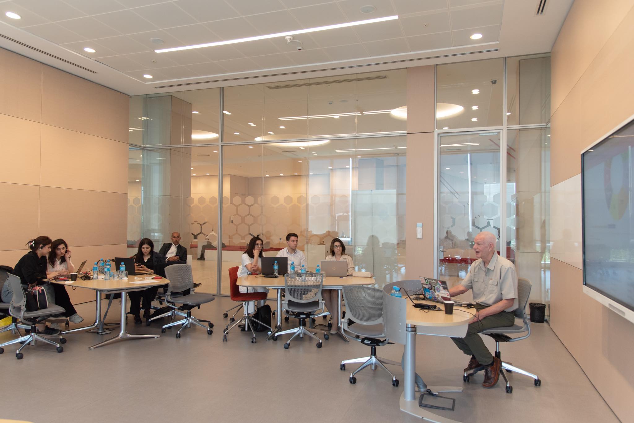 Virginia Birləşmiş Universitetinin fəxri dosenti, 20 ildən çox xəbər agentliklərində müxbir və redaktor kimi çalışmış Cef Sauzun keçirdiyi təlim sessiyasında data jurnalistikası və onun vizuallaşdırılması, dron videoqrafiyası və digər rəqəmsal bacarıqlar üzrə media nümayəndələrinə ətraflı məlumat verib.