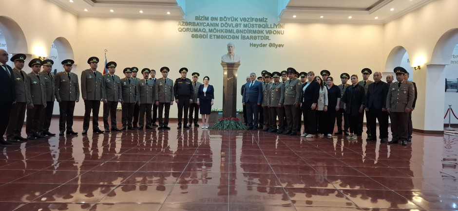 Dövlət Himninin səsləndirilməsi ilə başlanan tədbirlərdə Ümummilli Liderin, ölkəmizin müstəqilliyi və ərazi bötüvlüyü uğrunda canlarından keçmiş şəhidlərimizin əziz xatirəsi bir dəqiqəlik sükutla yad edilib.