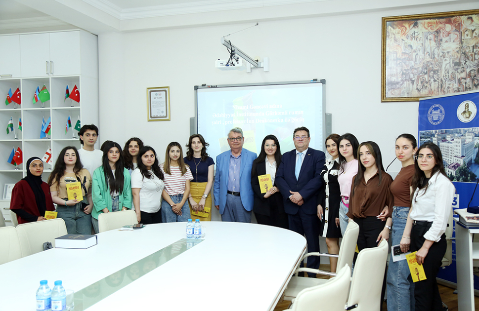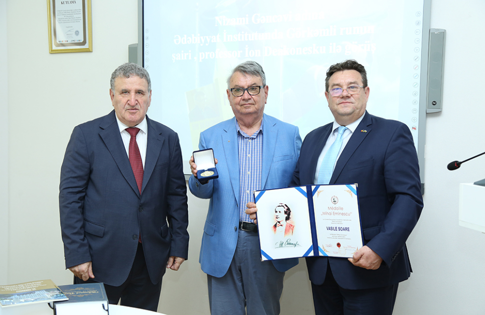 Mayın 19-da Azərbaycan Milli Elmlər Akademiyasının (AMEA) Nizami Gəncəvi adına Ədəbiyyat İnstitutunda görkəmli rumın şairi, Beynəlxalq Mihay Eminesku Akademiyasının prezidenti professor İon Deakonesku ilə görüş keçirilib.