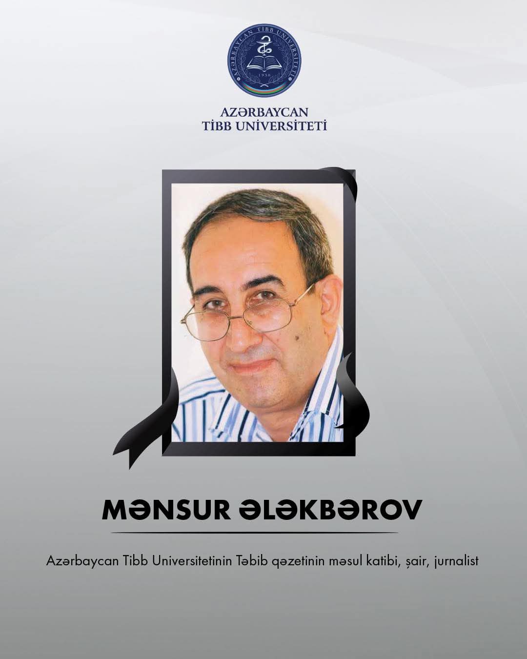 "Təbib" qəzetinin məsul katibi, şair, jurnalist Mənsur Ələkbərov vəfat edib.
