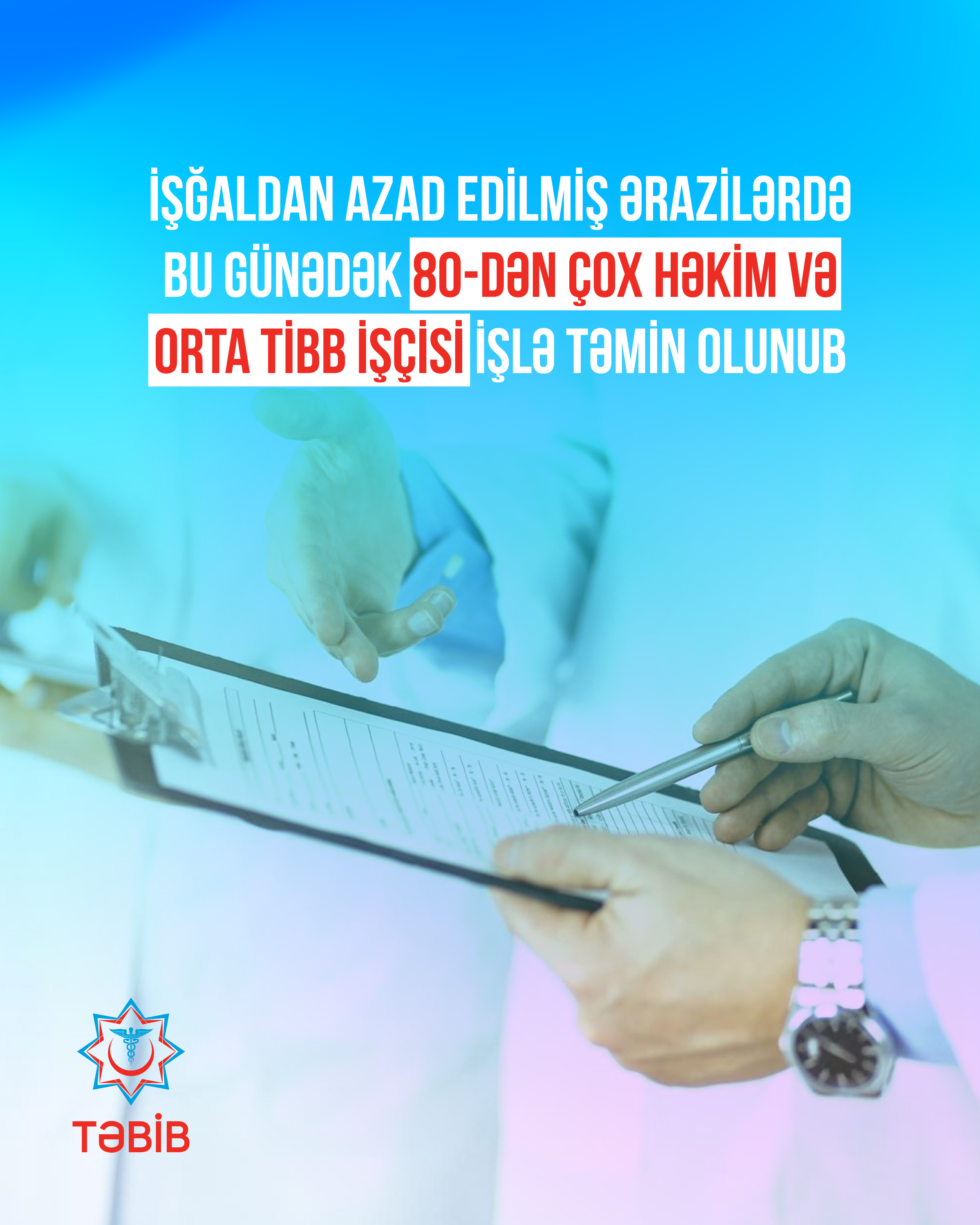 İşğaldan azad edilmiş ərazilərdə bu günədək 80-dən həkim və orta tibb işçisi işlə təmin olunub.