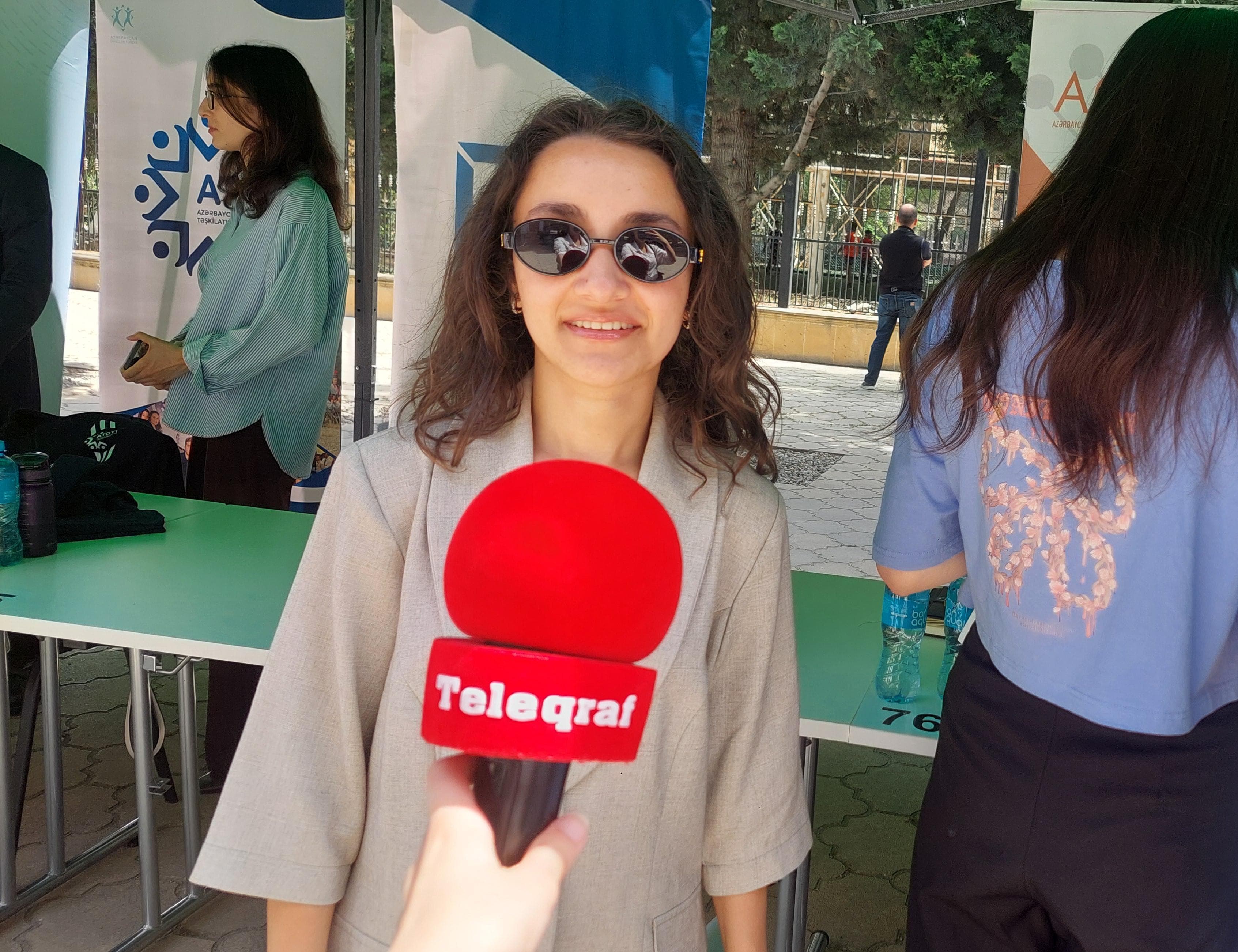 "Mən bu il tarix müəllimliyini bitirirəm. Təəssüf ki, öz ixtisasıma uyğun vakansiya tapa bilmədim. Bəs mən nə edim? Bir vakansiya var idi, o da ingilis dilli tarix müəllimləri üçün nəzərdə tutulmuşdu. Daha çox biznes, iqtisadiyyat sahəsində vakansiya gördüm. Hər sahə üzrə vakansiya olsa daha yaxşı olardı", - deyə bildirir.