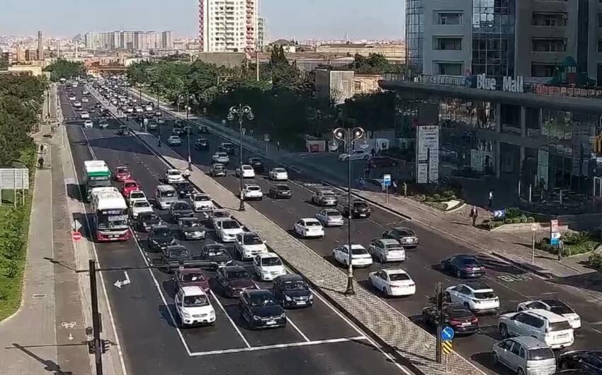 Bakının bir sıra yollarında nəqliyyatın sıxlığı müşahidə olunur.