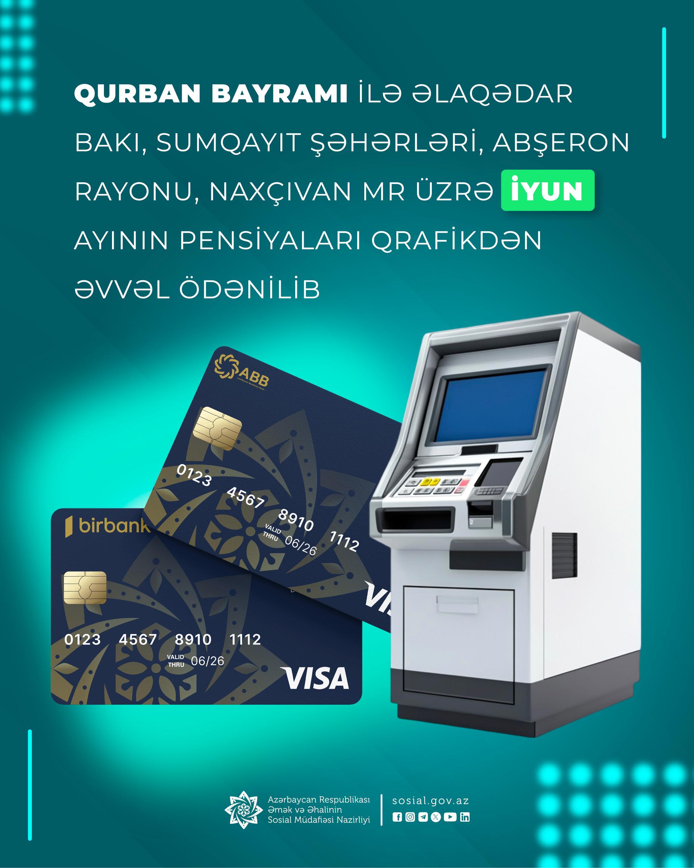 Respublikamızın digər bölgələri, habelə güzəştli şərtlərlə pensiya hüququna malik şəxslərin iyun ayı üzrə pensiyaları da bu ay qrafik əsasında ödəniləcək.