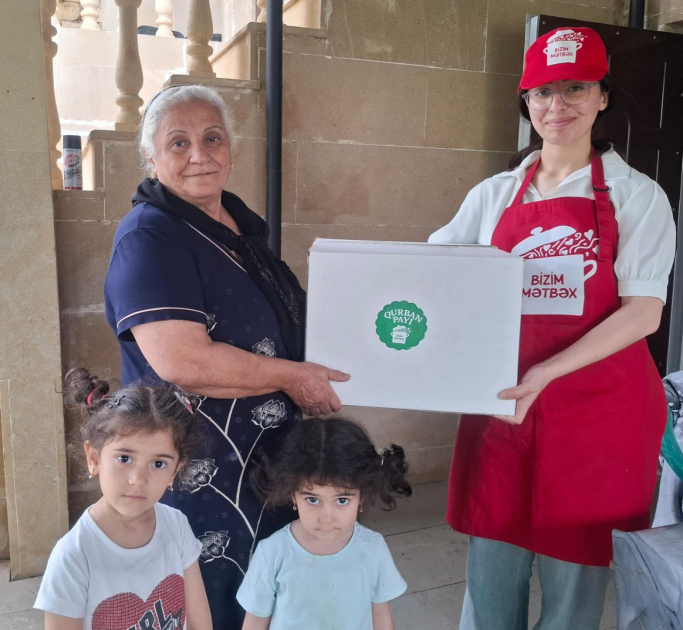 “Bizim mətbəx” sosial layihəsi çərçivəsində həyata keçirilən bu xeyriyyə aksiyasının növbəti ünvanı Bakı şəhərinin Qaradağ rayonu olub. Burada yaşayan 200 aztəminatlı ailəyə bayram münasibətilə qurban payları təqdim edilib.