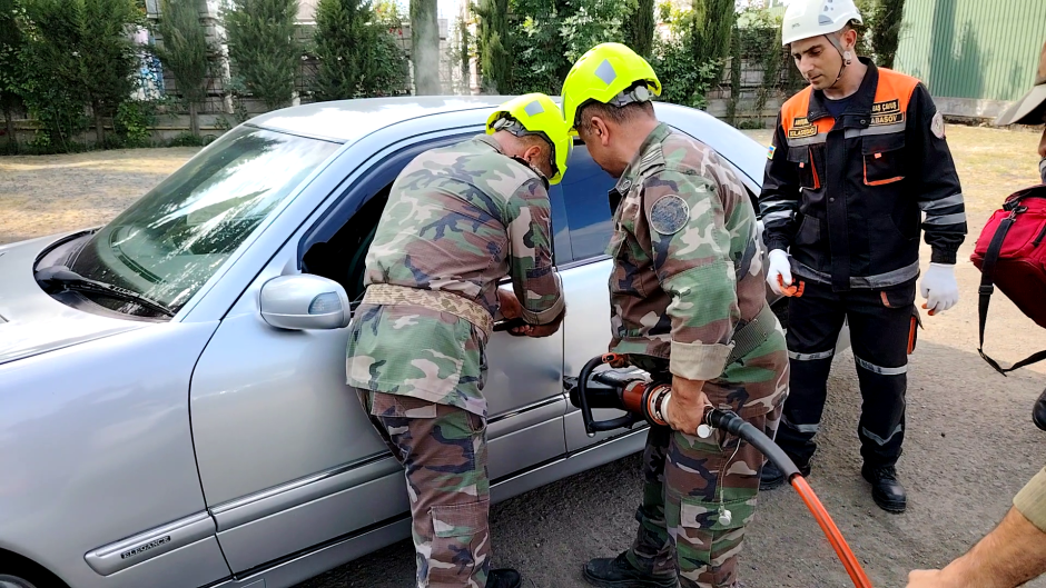 Təlim zamanı xilasedicilər şərti nəqliyyat qəzası zamanı avtomobillərdə baş vermiş “yanğını operativ söndürərək”, deformasiyaya uğramış avtomobillərdən “zərərçəkmişləri xilas edib onlara təxirəsalınmaz ilkin yardım göstəriblər”.