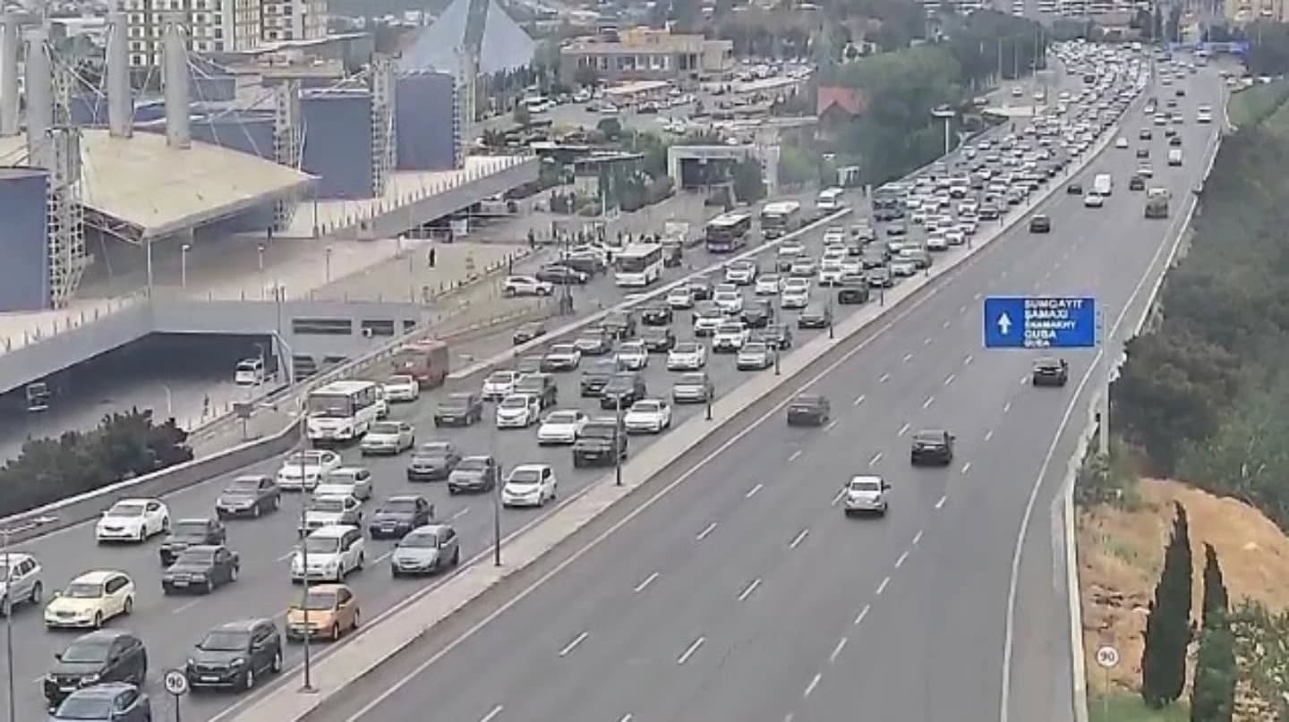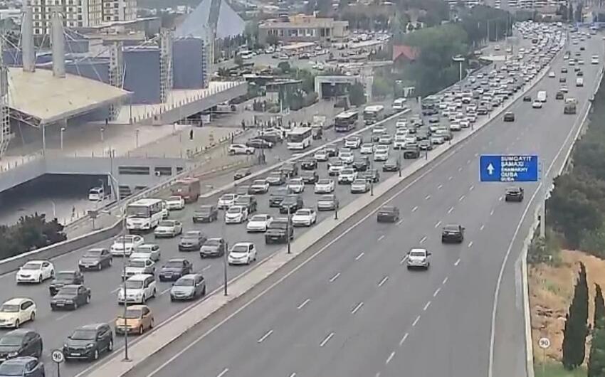 Bakının bir sıra yollarında nəqliyyatın sıxlığı yaranıb.