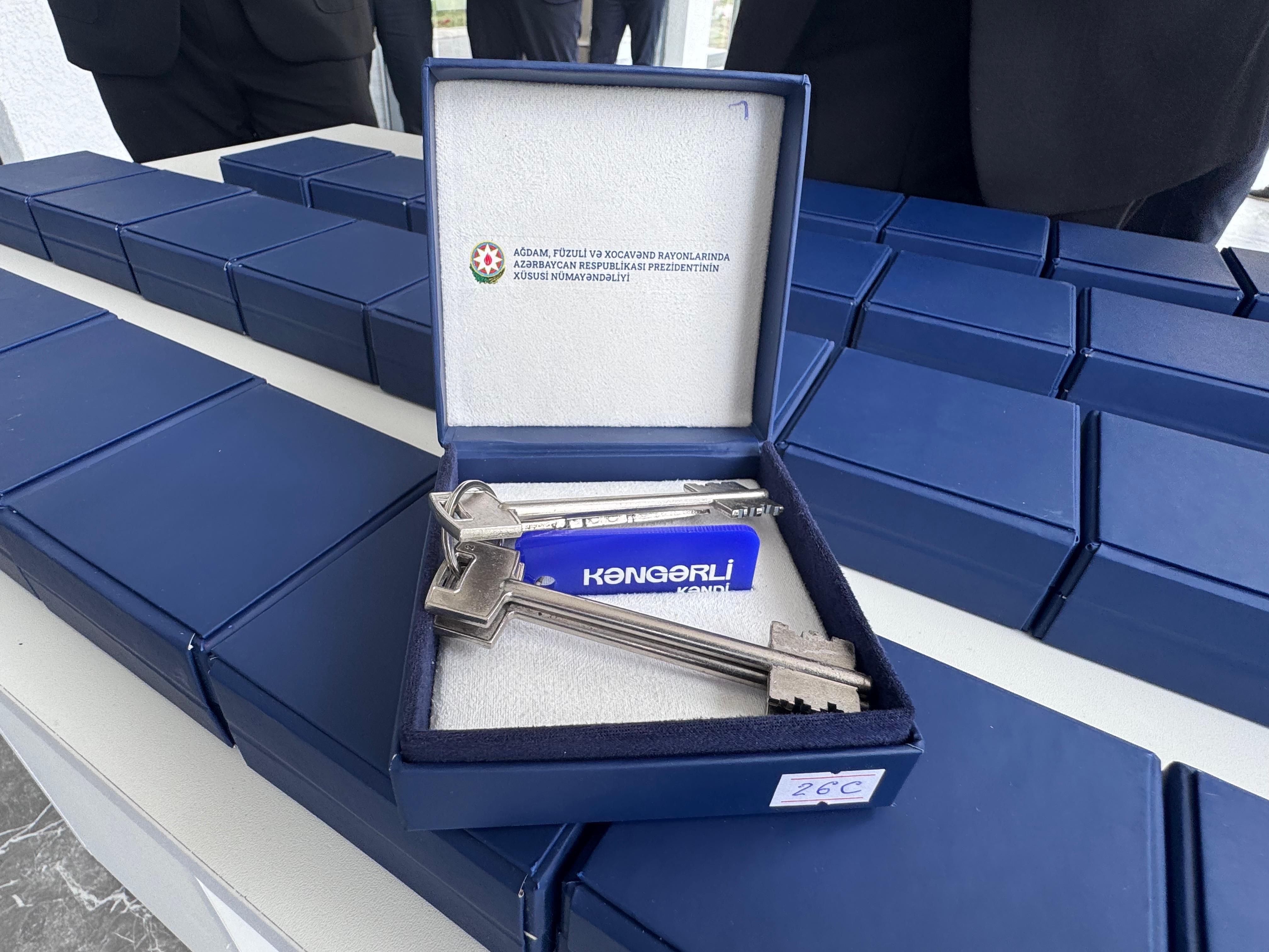 Ağdamın Kəngərli kəndinə köçürülən 154 nəfərdən ibarət 40 ailəyə yeni tikilmiş fərdi yaşayış evlərinin açarları təqdim edilib.