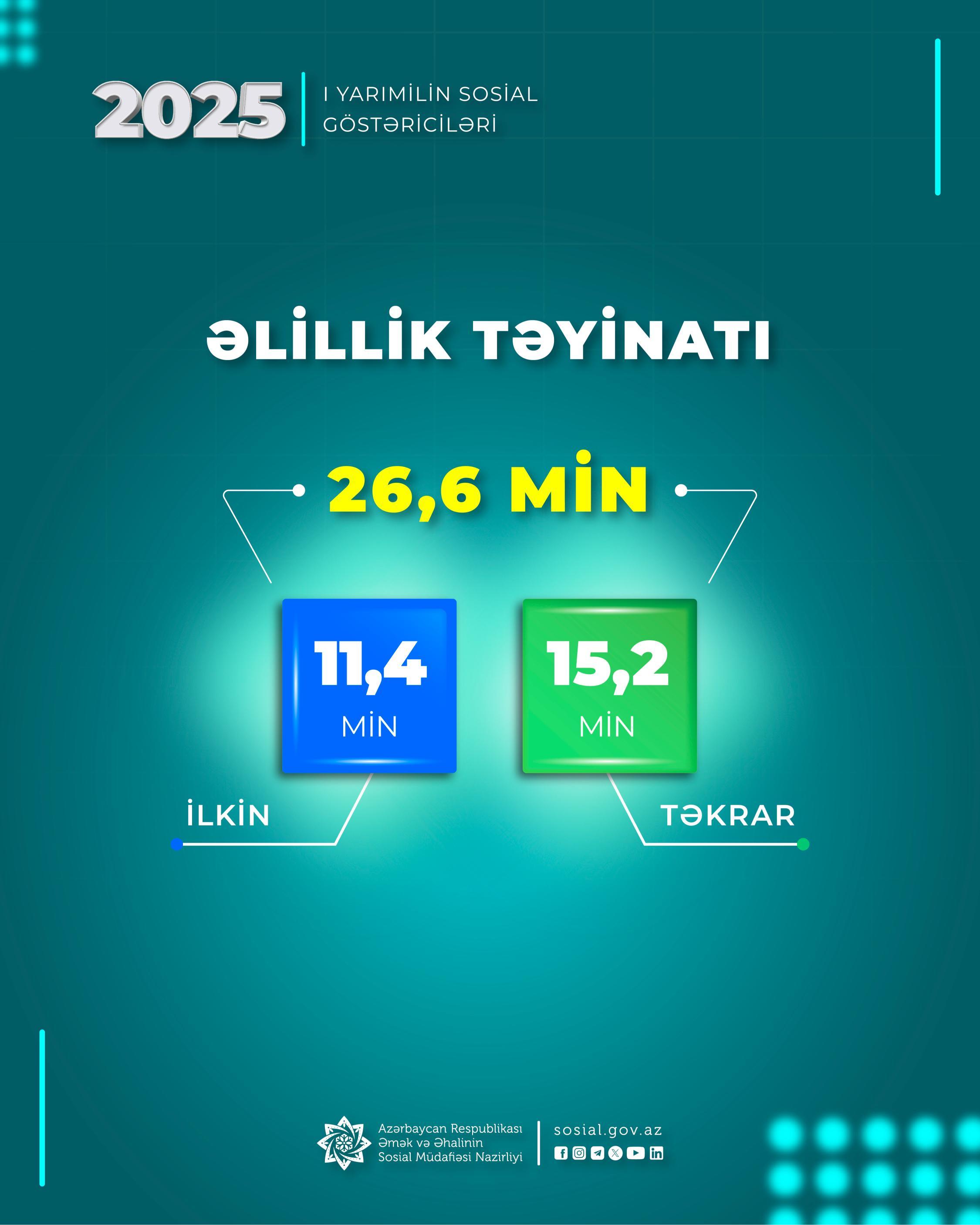 Onlardan 11,4 min şəxsə ilkin, 15,2 min şəxsə isə təkrar əlillik təyinatı aparılıb.