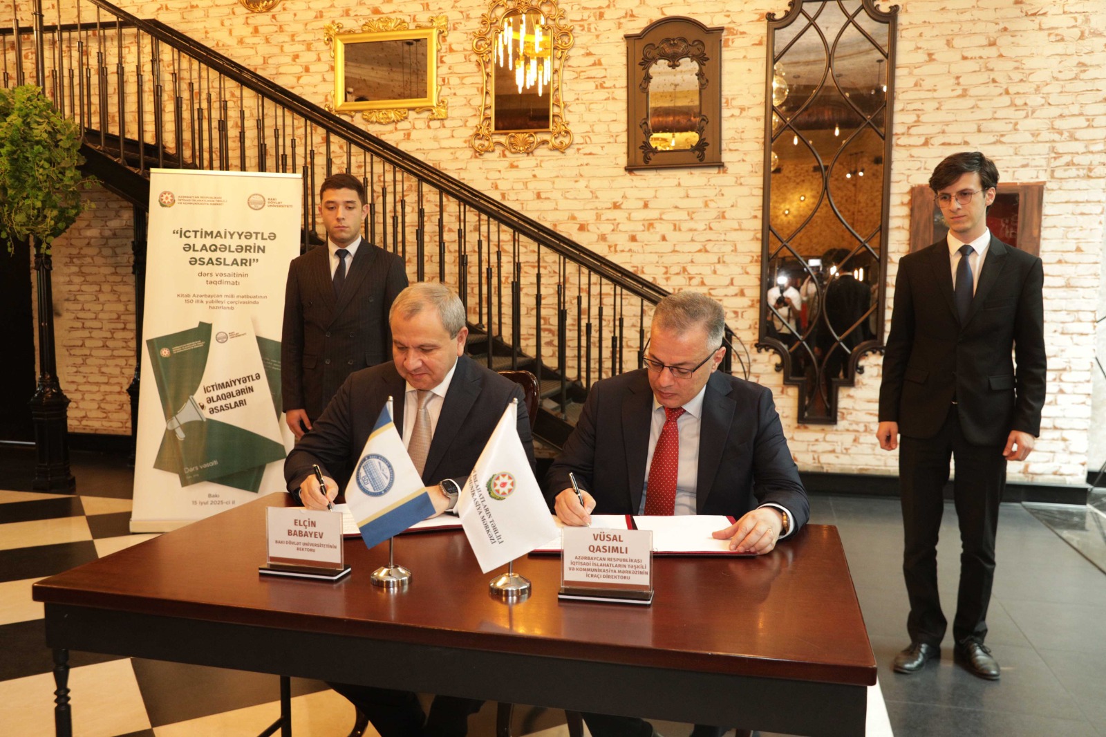 Bakı Dövlət Universiteti (BDU) ilə İqtisadi İslahatların Təhlili və Kommunikasiya Mərkəzi arasında əməkdaşlıq haqqında anlaşma memorandumu imzalanıb. Memorandumu BDU rektoru Elçin Babayev və İqtisadi İslahatların Təhlili və Kommunikasiya Mərkəzinin İcraçı direktoru Vüsal Qasımlı imzalayıb.