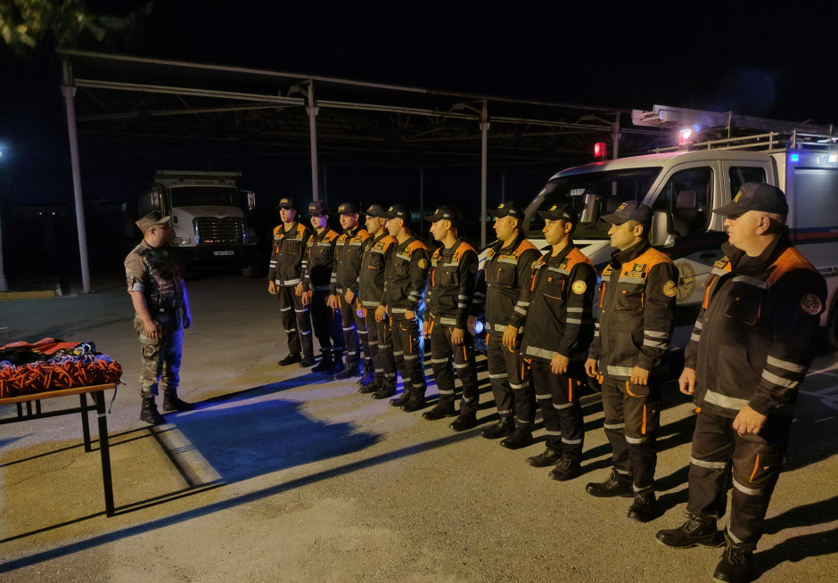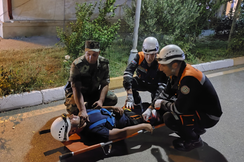 Təlim zamanı xilasedicilər xüsusi vasitələrlə şərti zərərçəkmişləri “hündürmərtəbəli bina”dan təxliyə edərək onlara “təxirəsalınmaz ilkin yardım göstəriblər”.
