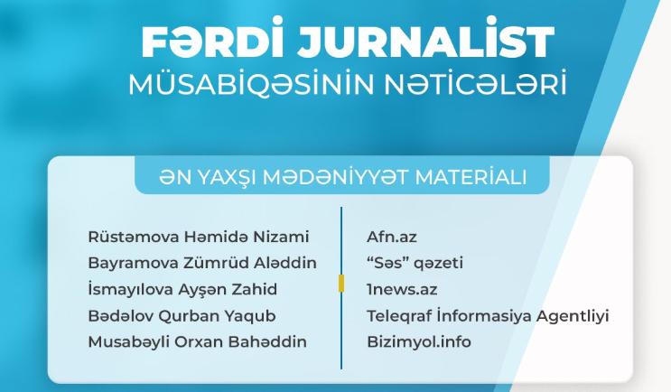 Medianın İnkişafı Agentliyinin elan etdiyi "Fərdi jurnalist müsabiqəsi"nin nəticələri açıqlanıb.