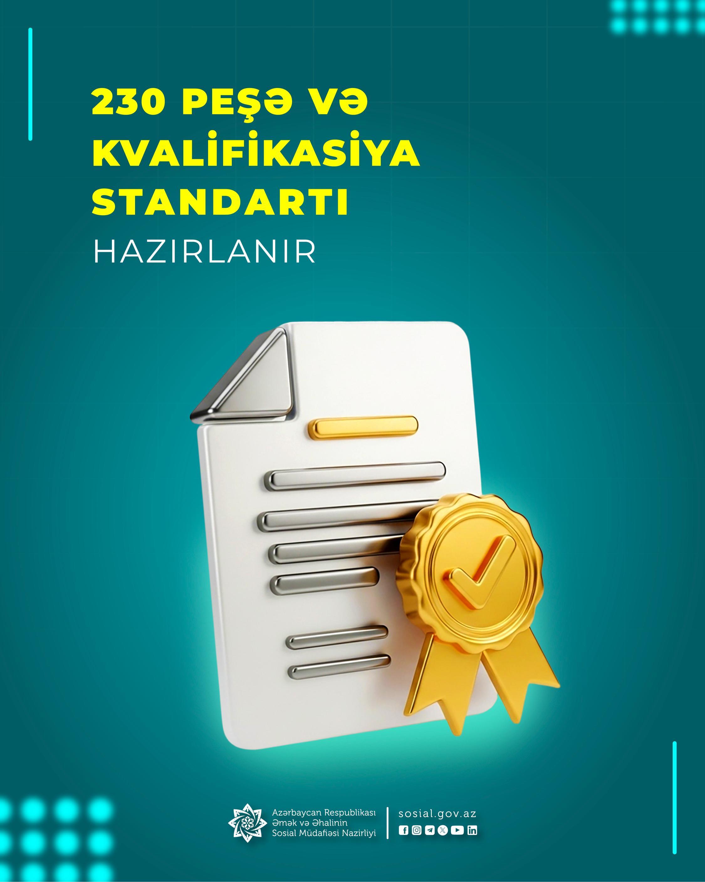 Əmək və Əhalinin Sosial Müdafiəsi Nazirliyi tərəfindən son beş ildə 1400-dək, o cümlədən son aylarda 70 peşə və kvalifikasiya standartı hazırlanaraq təsdiqlənib.