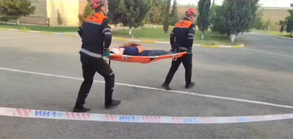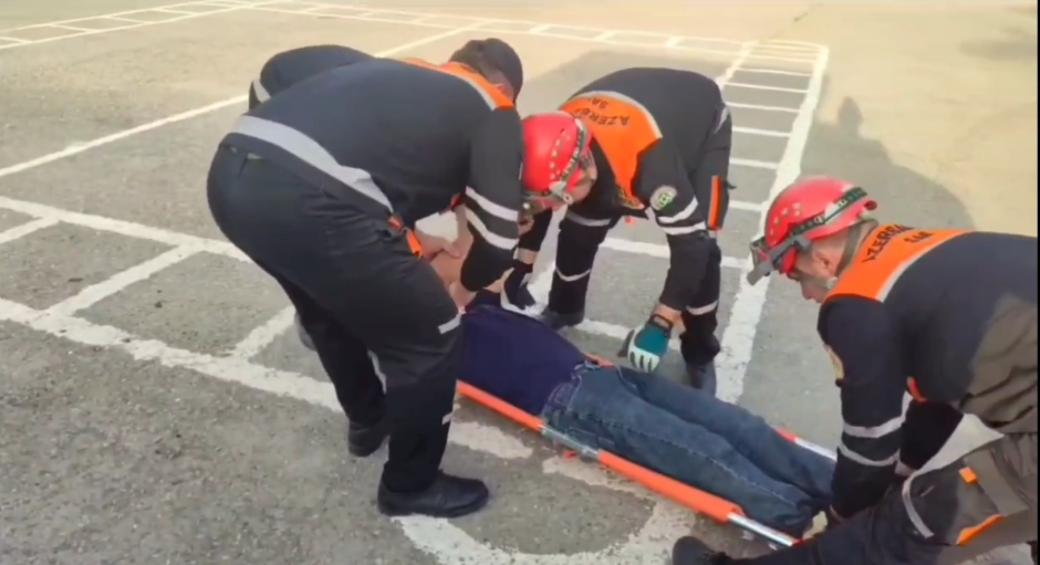Təlim zamanı xilasedicilər tərəfindən şərti nəqliyyat qəzası zamanı deformasiyaya uğramış avtomobildən “zərərçəkmişlər” xilas edilərək, onlara “təxirəsalınmaz ilkin yardım göstərilib”.