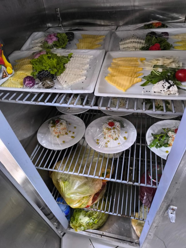 Baxış zamanı müəssisənin qida təhlükəsizliyi qeydiyyatdan keçmədən fəaliyyət göstərdiyi, işçilərin tibbi müayinədən keçirilmədiyi, heyvan mənşəli məhsulların müvafiq baytarlıq sənədlərinini olmadığı, emal üçün ayrıca sahələrin təşkil edilmədiyi, manqal sahəsinin tavanında qopuqlar və soyuducuların rəflərində isə paslanma müşahidə edilib.