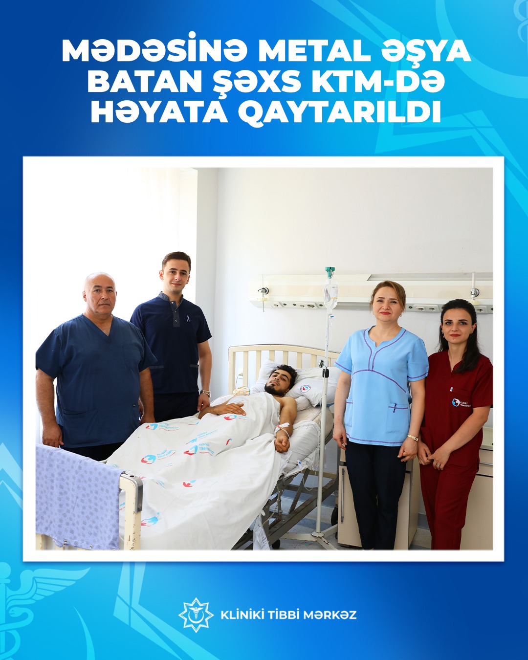 Avqustun 1-də qarın boşluğuna metal əşya batmış 2004-cü il təvəllüdlü şəxs (kişi cinsli) ağır vəziyyətdə Kliniki Tibbi Mərkəzin Təcili və Təxirəsalınmaz Tibbi Yardım şöbəsinə yerləşdirilib.