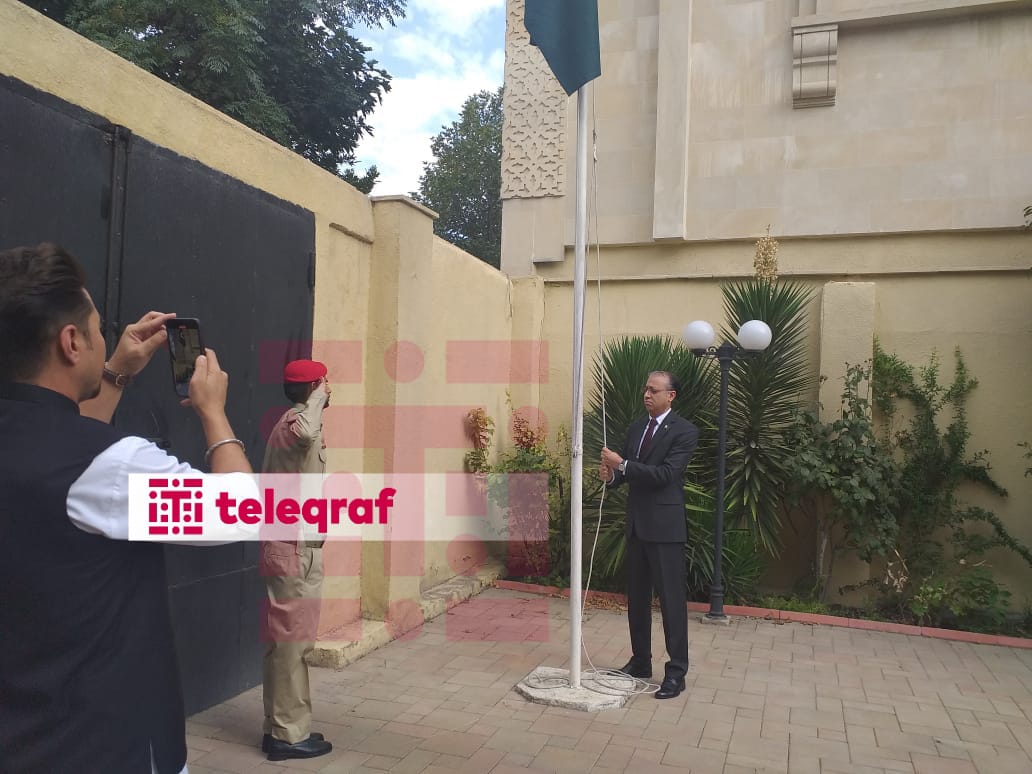 Tədbirdə Pakistanın dövlət himni səsləndirilərək bayrağı qaldırılıb.