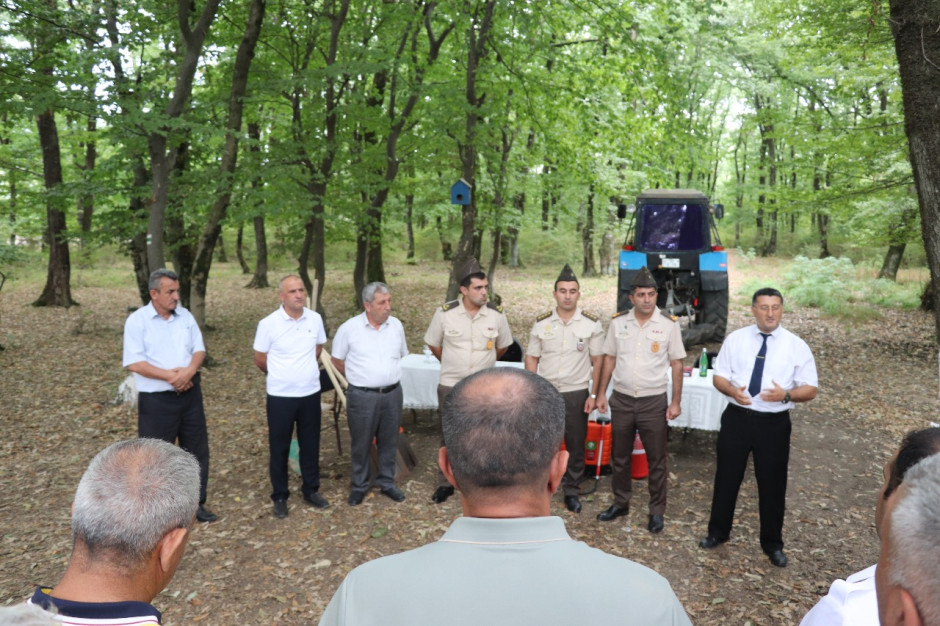 Tədbirin praktiki hissəsində şərti olaraq baş vermis meşə yanğınının qarşısının alınması, eyni zamanda xüsusi texnika vasitəsilə meşə ətrafında 6-8 metr enində ərazinin şumlanaraq təhlükəsizlik zolağının yaradılması əyani şəkildə tədbir iştirakçılarına nümayiş etdirilib.