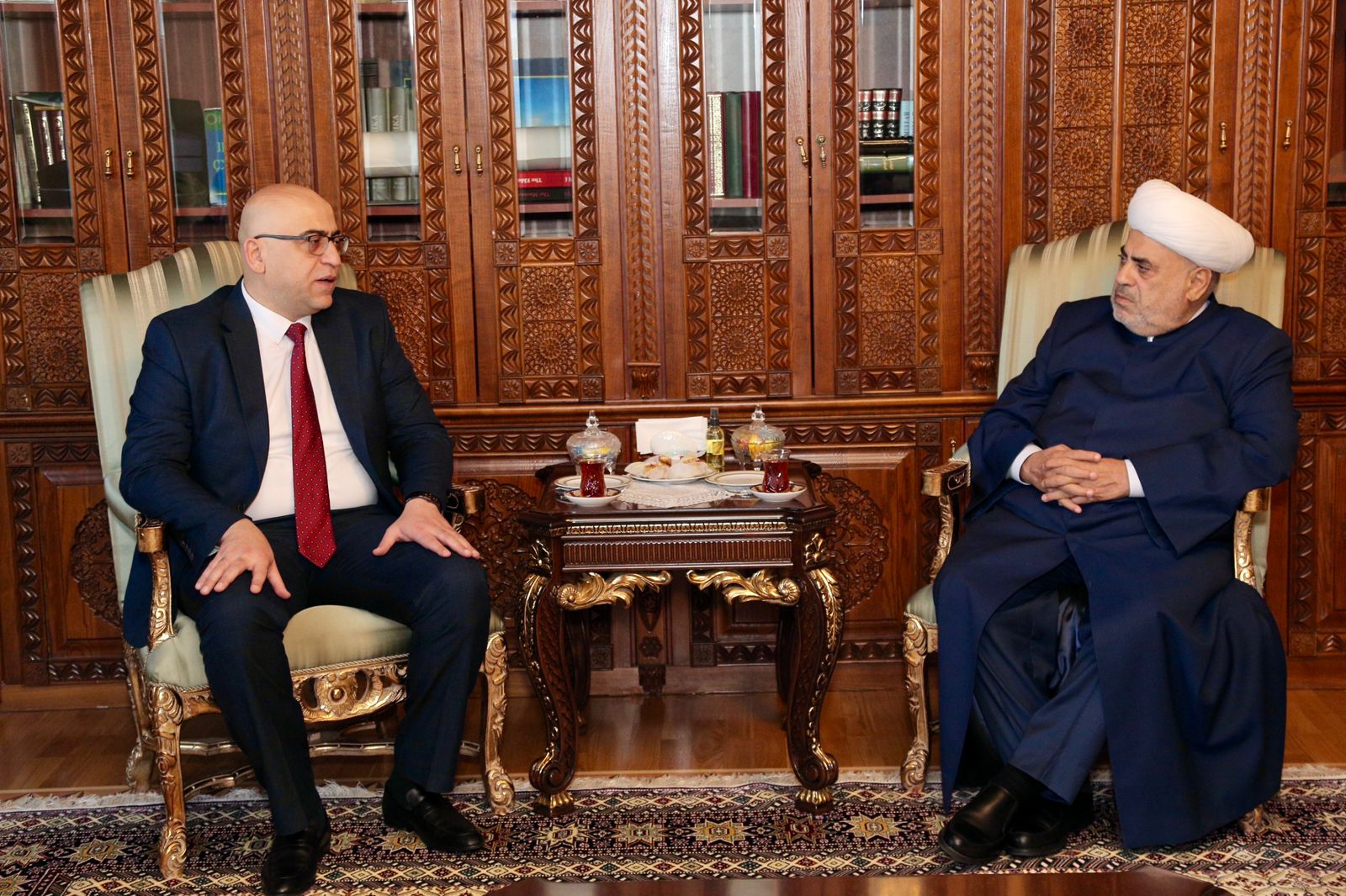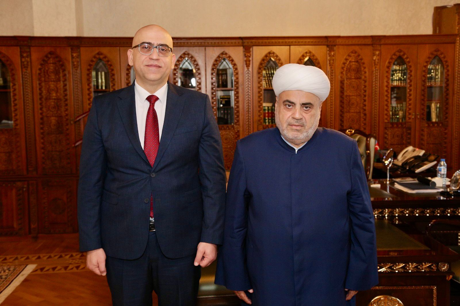 Bu gün Şeyxülislam Allahşükür Paşazadə Fələstin dövlətinin ölkəmizdə yeni təyin olunmuş fövqəladə və səlahiyyətli səfiri Əhməd Metanini qəbul edib.