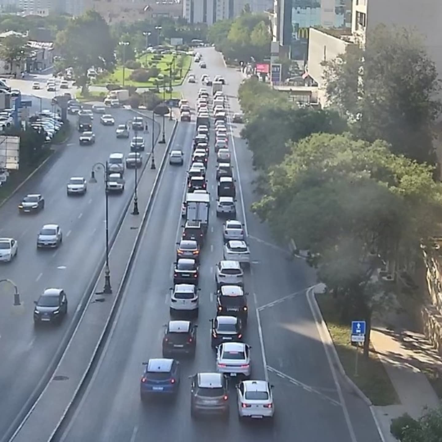 Bakının bir sıra yollarında nəqliyyatın sıxlığı yaranıb.