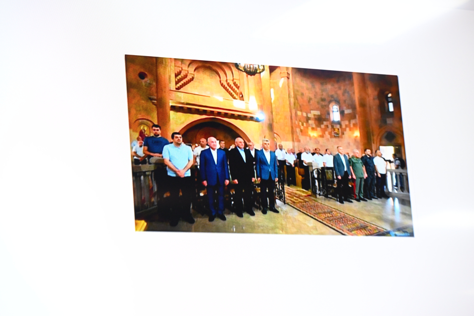 Məhkəmə iclası təqsirləndirilən şəxs Arayik Harutyunyanın mətbuatda və sosial şəbəkələrdə paylaşdığı məlumatlar və ifadələrinin elanı ilə davam edib, fotogörüntülər təqdim olunub.