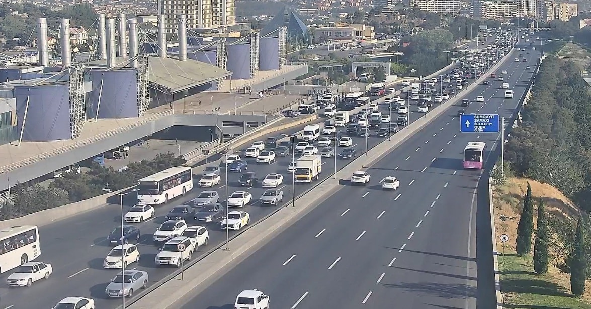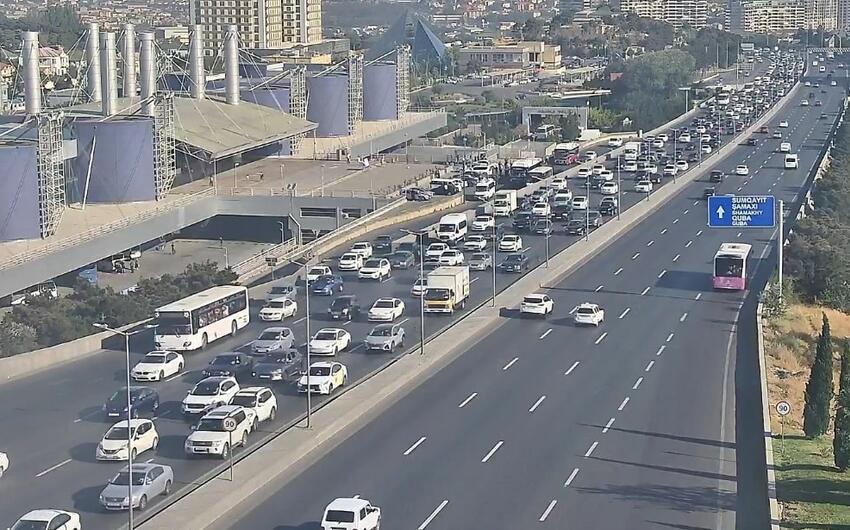 Bakının bir sıra yollarında nəqliyyatın sıxlığı yaranıb.
