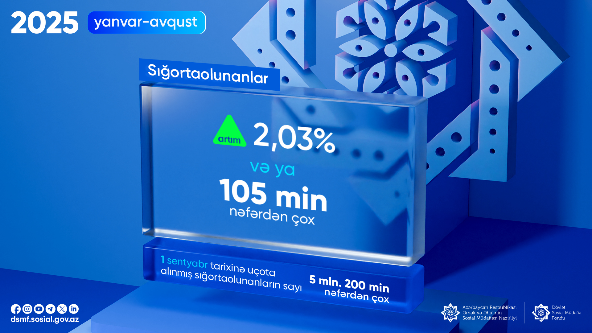 Bildirilib ki, 2025-ci ilin 1 sentyabr tarixinə uçota alınmış sığortaolunanların sayı 5 mln. 200 min nəfərdən çox olub.
