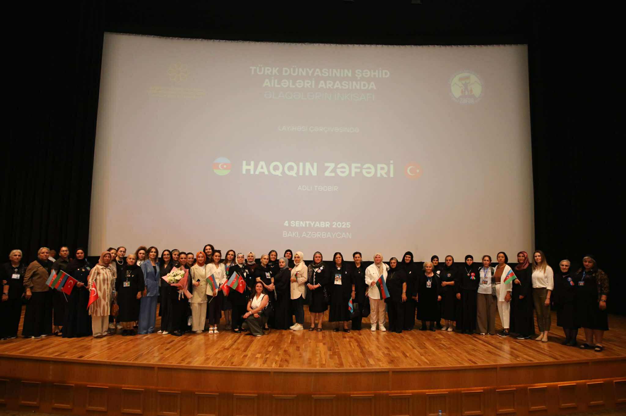 Nizami Kino Mərkəzində "Zəfər" Şəhid Ailələrinə Dəstək İctimai Birliyinin təşkilatçılığı ilə "Türk dünyasının şəhid ailələri arasında əlaqələrin inkişafı" layihəsi çərçivəsində 2023-cü ildə Azərbaycan Ordusunun həyata keçirdiyi uğurlu antiterror əməliyyatlarının ikinci ildönümünə həsr olunan “Haqqın Zəfəri” adlı tədbir keçirilib.