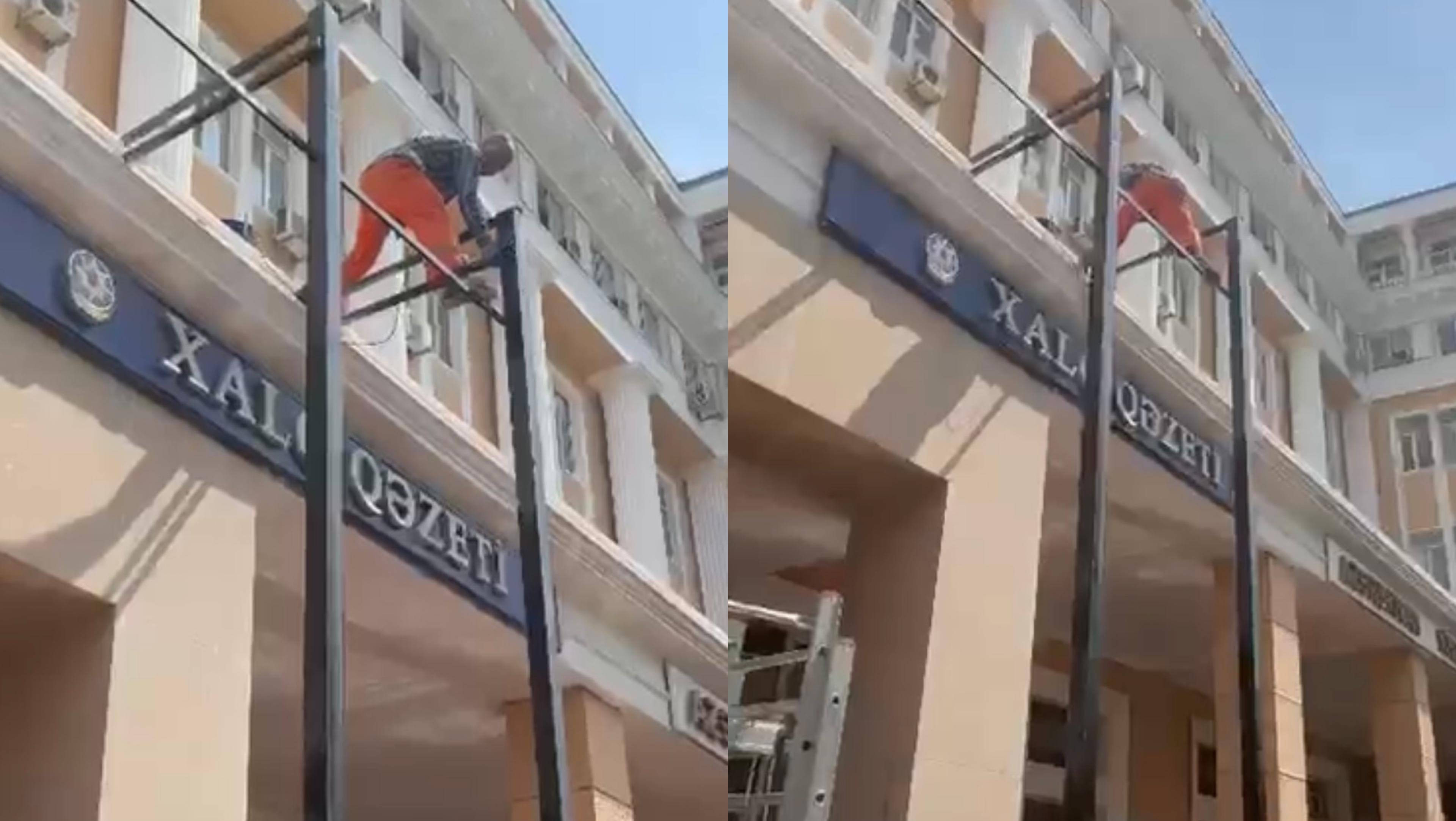Bakı şəhəri, Nəsimi rayonu, Bülbül prospekti, 28 May küçəsində yerləşən, yerli əhəmiyyətli memarlıq abidəsinin fasadında icazəsiz quraşdırılmış metal konstruksiyalar sökülür.