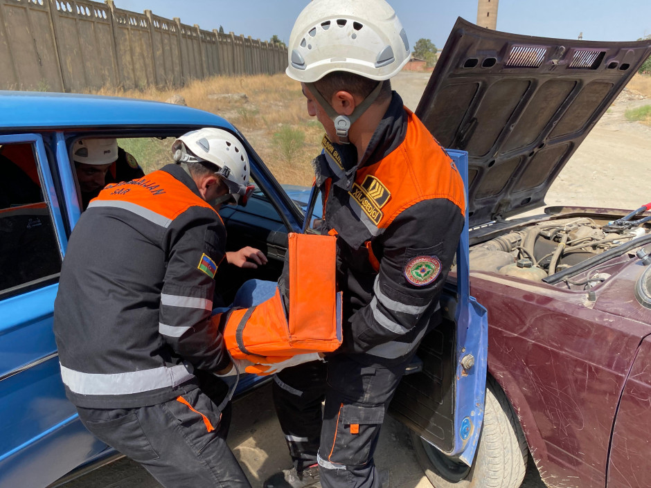 Təlim zamanı xilasedicilər şərti nəqliyyat qəzası zamanı deformasiyaya uğramış avtomobillərdən zərərçəkmişləri təxliyə edərək onlara “təxirəsalınmaz ilkin yardım” göstərib, təcili tibbi yardım briqadasına təhvil veriblər.