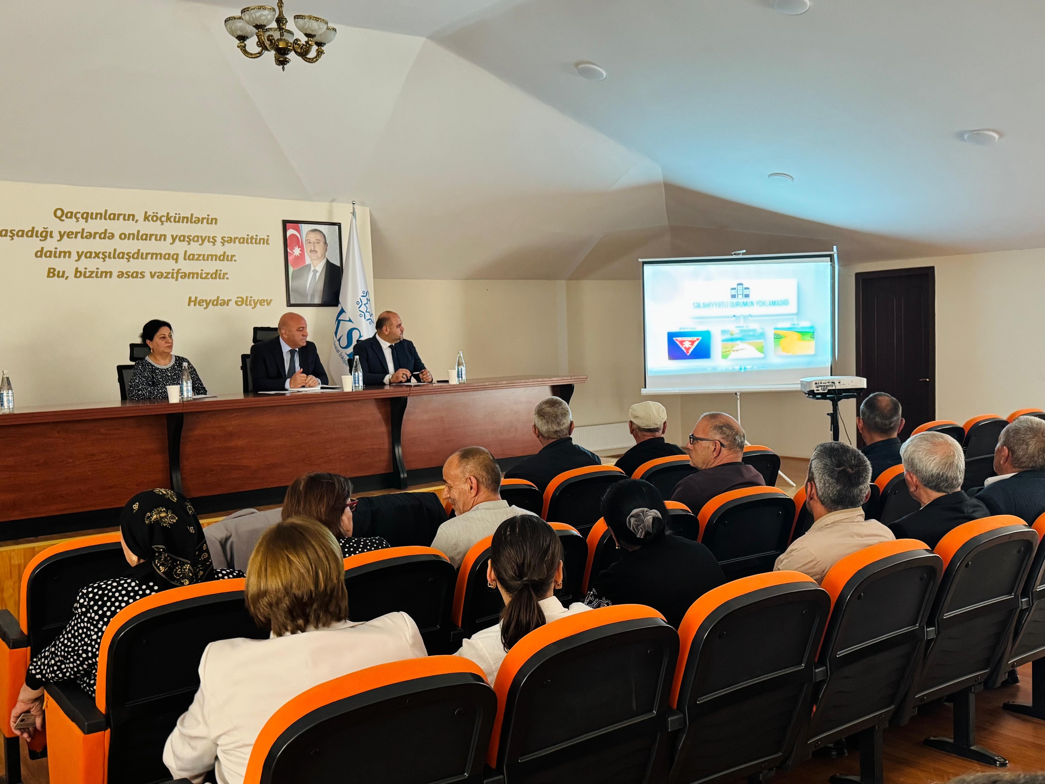 Bildirilib ki, bununla əlaqədar olaraq, növbəti tədbir Ağdam rayonunun Xıdırlı kəndinə köçürülən 176 ailə arasında keçirilib. Dövlət Komitəsində keçirilən tədbirdə məcburi köçkünlərin sosial müdafiəsi məsələləri və vahid aylıq müavinətin daimi yaşayış yerinə geri qayıtmış şəxslərin üç il müddəti başa çatdıqdan sonra dayandırılacağı və mina təhlükəsi haqqında hazırlanmış videoçarxlar məcburi köçkünlər üçün nümayiş etdirilib.
