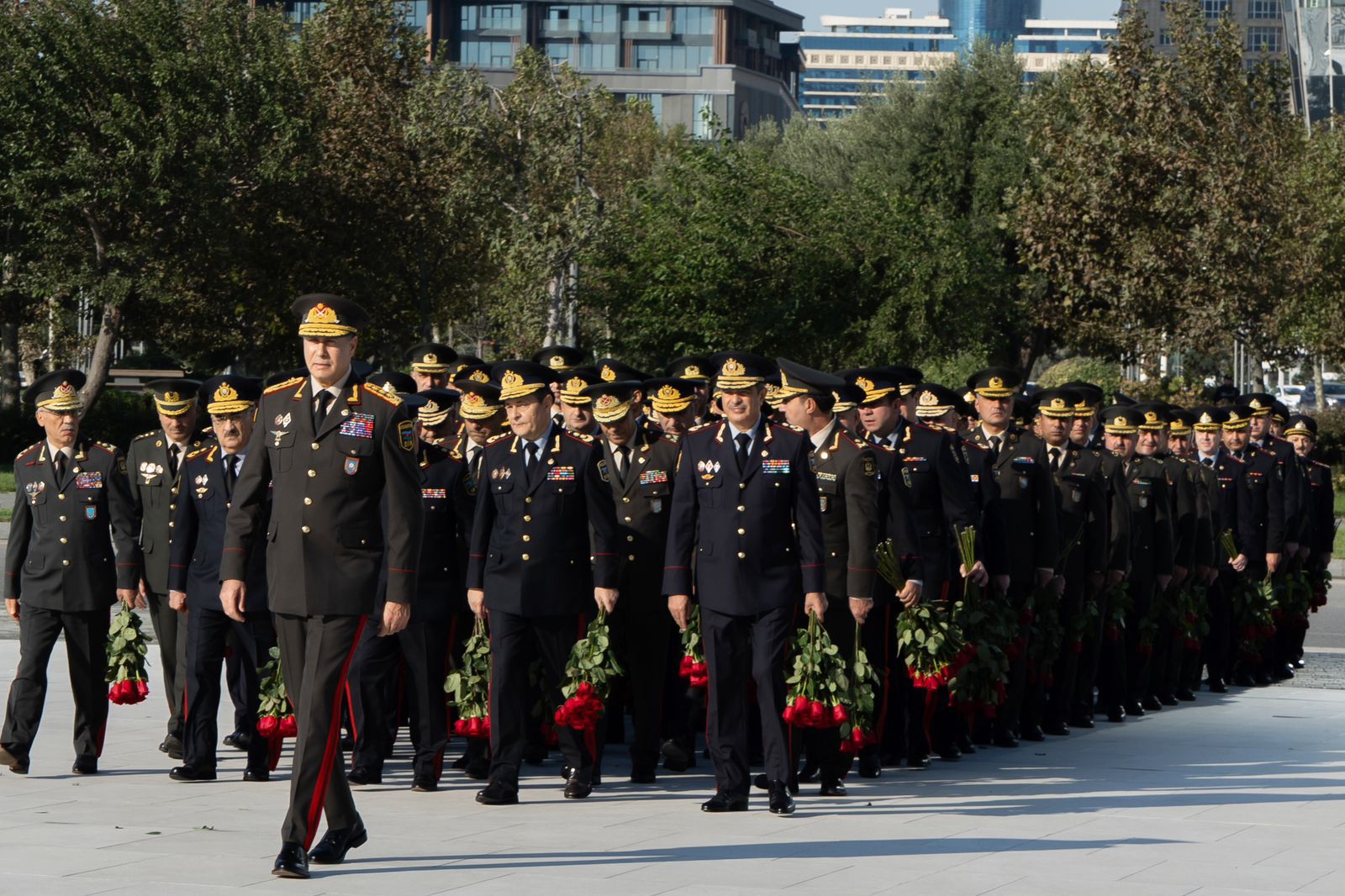 Bu gün Azərbaycanın Daxili İşlər Nazirliyinin şəxsi heyəti Zəfər parkına gələrək 44 günlük Vətən müharibəsində respublikamızın ərazi bütövlüyünün qorunması, bərpası və torpaqlarımızın işğaldan azad edilməsi uğrunda gedən döyüşlərdə şəhidlik zirvəsinə ucalan qəhrəman Vətən övladlarının xatirəsini ehtiramla yad ediblər, xatirə daşının önünə gül dəstələri qoyublar.